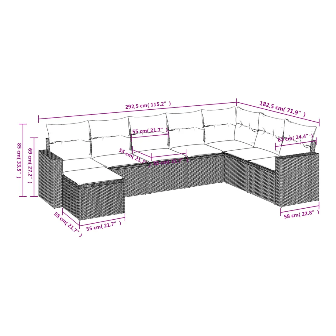Cet ensemble de canapés de jardin est le complément parfait de votre arrière-cour, terrasse ou patio, offrant un espace confortable et accueillant pour discuter avec la famille et les amis ou simplement se détendre et profiter de l'extérieur. Matériau durable : la résine tressée, également connue sous le nom de poly rotin, est un matériau synthétique solide et nécessitant peu d'entretien qui ressemble au rotin naturel. Il est léger, facile à nettoyer et couramment utilisé pour les meubles d'extérieur en raison de sa durabilité et de ses propriétés de résistance aux intempéries.Expérience d'assise confortable : ce mobilier d'extérieur, doté de coussins épais, offre une expérience d'assise confortable. Les larges accoudoirs offrent également un endroit pratique pour garder votre téléphone portable, vos tasses ou d'autres petits objets à portée de main.Housse amovible et lavable : ces coussins de siège sont dotés de housses amovibles pour un lavage et un entretien faciles.Conception modulaire : cet ensemble de meubles d'extérieur a une conception modulaire, ce qui le rend complètement flexible et facile à déplacer, afin que vous puissiez créer un agencement de meubles d'extérieur personnalisé. Bon à savoir :Pour que vos meubles d'extérieur restent beaux, nous vous recommandons de les protéger avec une housse imperméable.