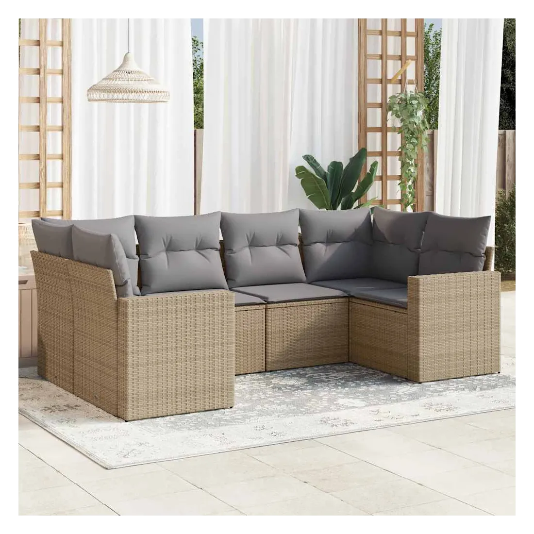 Cet ensemble de canapés de jardin est le complément parfait de votre arrière-cour, terrasse ou patio, offrant un espace confortable et accueillant pour discuter avec la famille et les amis ou simplement se détendre et profiter de l'extérieur. Matériau durable : la résine tressée, également connue sous le nom de poly rotin, est un matériau synthétique solide et nécessitant peu d'entretien qui ressemble au rotin naturel. Il est léger, facile à nettoyer et couramment utilisé pour les meubles d'extérieur en raison de sa durabilité et de ses propriétés de résistance aux intempéries.Expérience d'assise confortable : ce mobilier d'extérieur, doté de coussins épais, offre une expérience d'assise confortable. Les larges accoudoirs offrent également un endroit pratique pour garder votre téléphone portable, vos tasses ou d'autres petits objets à portée de main.Housse amovible et lavable : ces coussins de siège sont dotés de housses amovibles pour un lavage et un entretien faciles.Conception modulaire : cet ensemble de meubles d'extérieur a une conception modulaire, ce qui le rend complètement flexible et facile à déplacer, afin que vous puissiez créer un agencement de meubles d'extérieur personnalisé. Bon à savoir :Pour que vos meubles d'extérieur restent beaux, nous vous recommandons de les protéger avec une housse imperméable.