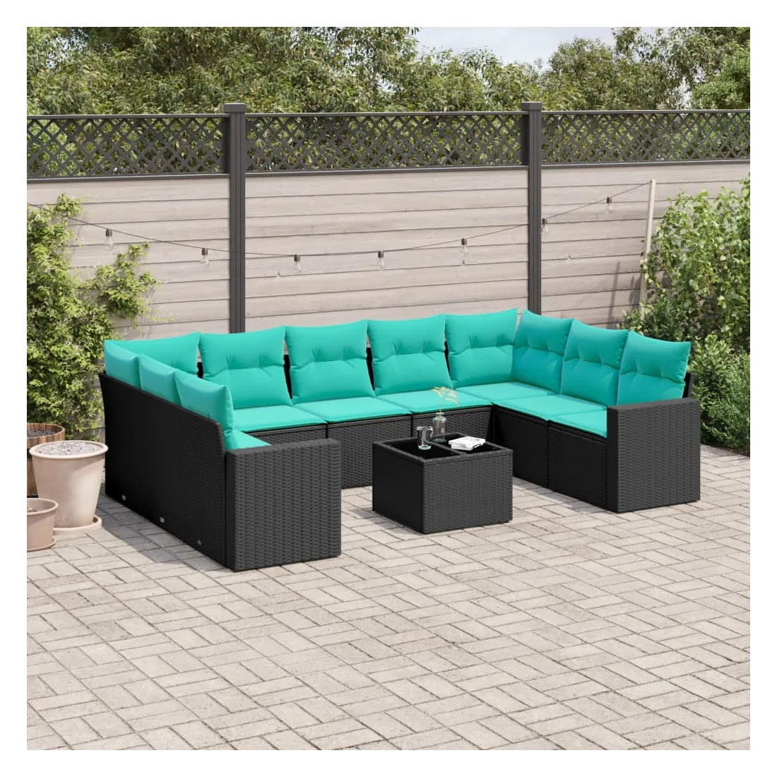 Cet ensemble de canapés de jardin est le complément parfait de votre arrière-cour, terrasse ou patio, offrant un espace confortable et accueillant pour discuter avec la famille et les amis ou simplement se détendre et profiter de l'extérieur. Matériau durable : la résine tressée, également connue sous le nom de poly rotin, est un matériau synthétique solide et nécessitant peu d'entretien qui ressemble au rotin naturel. Il est léger, facile à nettoyer et couramment utilisé pour les meubles d'extérieur en raison de sa durabilité et de ses propriétés de résistance aux intempéries.Expérience d'assise confortable : ce mobilier d'extérieur, doté de coussins épais, offre une expérience d'assise confortable. Les larges accoudoirs offrent également un endroit pratique pour garder votre téléphone portable, vos tasses ou d'autres petits objets à portée de main.Housse amovible et lavable : ces coussins de siège sont dotés de housses amovibles pour un lavage et un entretien faciles.Dessus en verre : le dessus de la table d'extérieur est fabriqué en verre trempé solide et durable, ce qui le rend facile à nettoyer avec un chiffon humide et ajoute une touche d'élégance à votre espace extérieur.Conception modulaire : cet ensemble de meubles d'extérieur a une conception modulaire, ce qui le rend complètement flexible et facile à déplacer, afin que vous puissiez créer un agencement de meubles d'extérieur personnalisé. Bon à savoir :Pour que vos meubles d'extérieur restent beaux, nous vous recommandons de les protéger avec une housse imperméable.