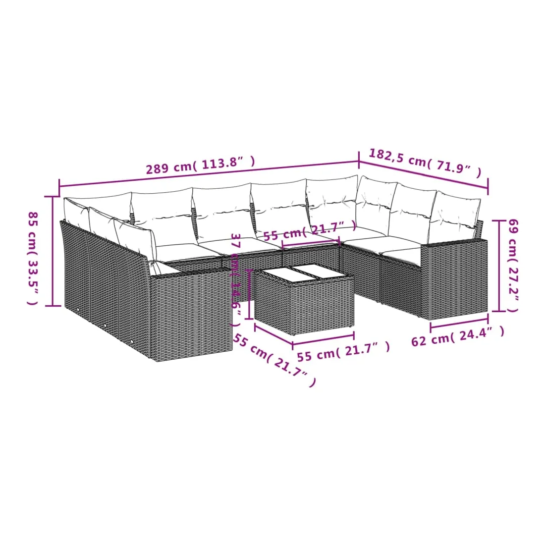 - Dimensions du coussin de dossier : 55 x 45 x 13 cm (L x l x é)