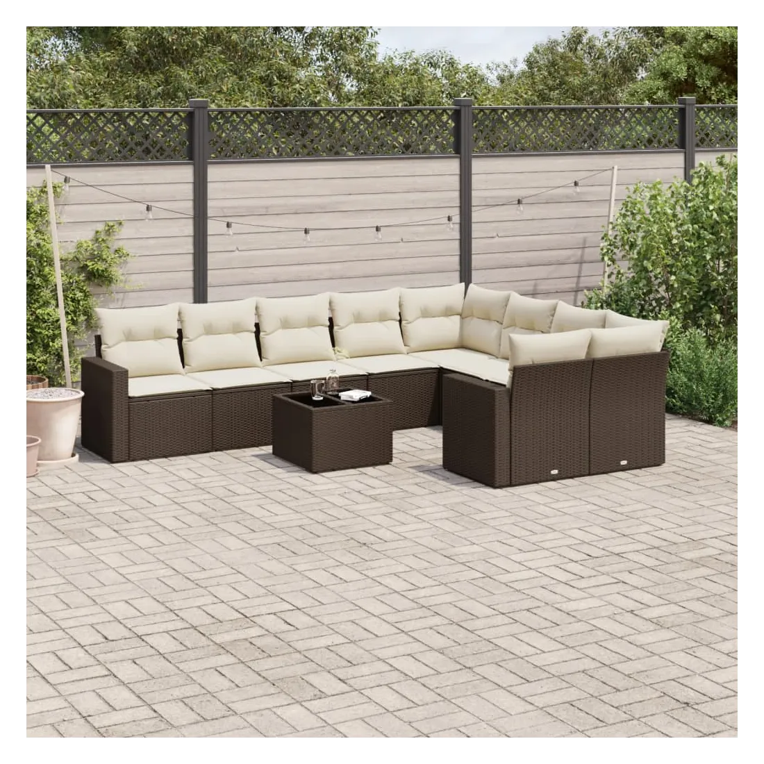 Salon de jardin 10 pcs avec coussins marron résine tressée