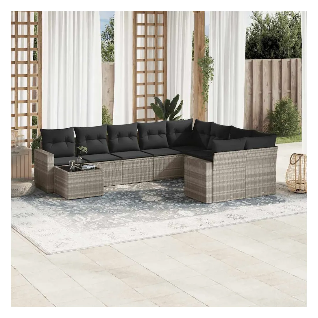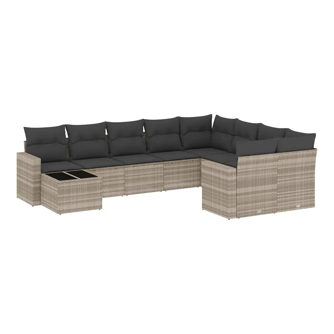 Salon de jardin avec coussins 10 pcs gris clair résine tressée