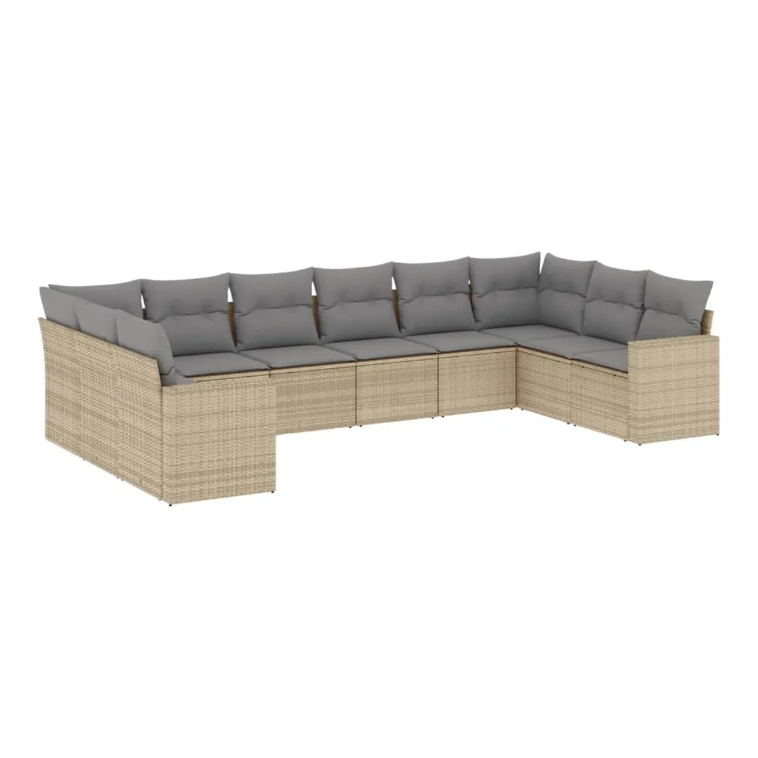 Salon de jardin avec coussins 10 pcs beige résine tressée