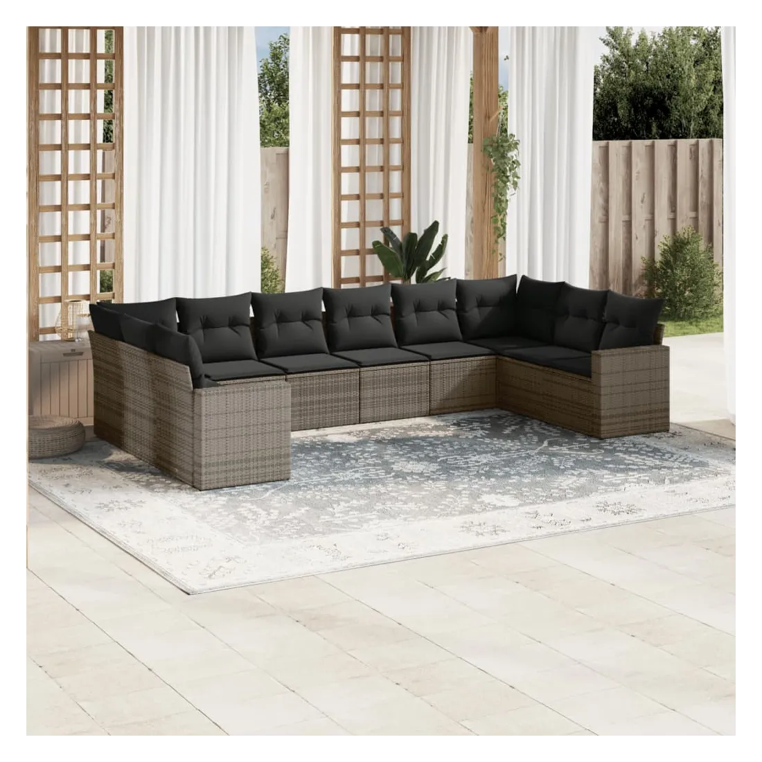 Cet ensemble de canapés de jardin est le complément parfait de votre arrière-cour, terrasse ou patio, offrant un espace confortable et accueillant pour discuter avec la famille et les amis ou simplement se détendre et profiter de l'extérieur. Matériau durable : la résine tressée, également connue sous le nom de poly rotin, est un matériau synthétique solide et nécessitant peu d'entretien qui ressemble au rotin naturel. Il est léger, facile à nettoyer et couramment utilisé pour les meubles d'extérieur en raison de sa durabilité et de ses propriétés de résistance aux intempéries.Expérience d'assise confortable : ce mobilier d'extérieur, doté de coussins épais, offre une expérience d'assise confortable.Housse amovible et lavable : ces coussins de siège sont dotés de housses amovibles pour un lavage et un entretien faciles.Conception modulaire : cet ensemble de meubles d'extérieur a une conception modulaire, ce qui le rend complètement flexible et facile à déplacer, afin que vous puissiez créer un agencement de meubles d'extérieur personnalisé. Bon à savoir :Pour que vos meubles d'extérieur restent beaux, nous vous recommandons de les protéger avec une housse imperméable.