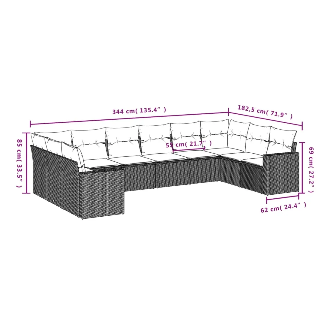 - Dimensions du coussin de dossier : 55 x 45 x 13 cm (L x l x é)