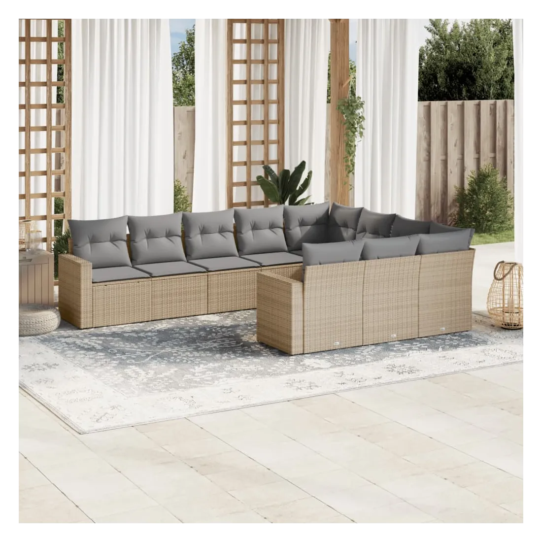 Salon de jardin avec coussins 10 pcs beige résine tressée