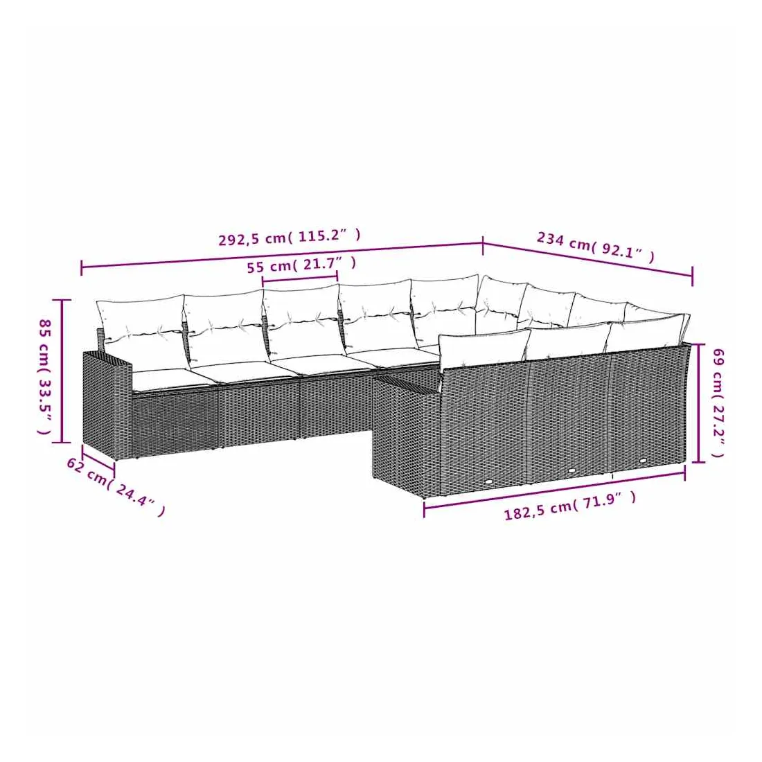 - Dimensions du coussin de dossier : 55 x 45 x 13 cm (L x l x é)