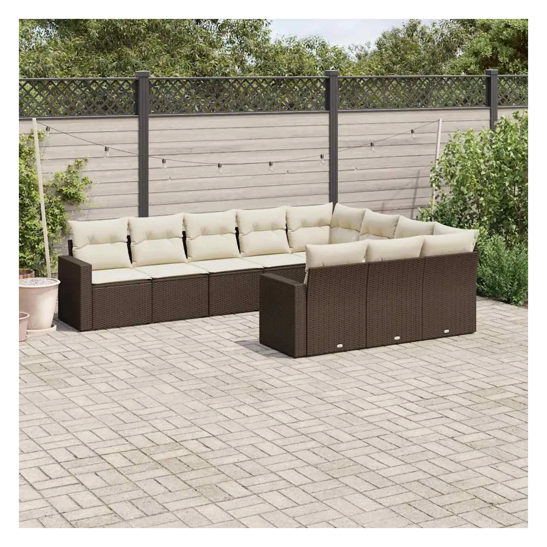 Cet ensemble de canapés de jardin est le complément parfait de votre arrière-cour, terrasse ou patio, offrant un espace confortable et accueillant pour discuter avec la famille et les amis ou simplement se détendre et profiter de l'extérieur. Matériau durable : la résine tressée, également connue sous le nom de poly rotin, est un matériau synthétique solide et nécessitant peu d'entretien qui ressemble au rotin naturel. Il est léger, facile à nettoyer et couramment utilisé pour les meubles d'extérieur en raison de sa durabilité et de ses propriétés de résistance aux intempéries.Expérience d'assise confortable : ce mobilier d'extérieur, doté de coussins épais, offre une expérience d'assise confortable.Housse amovible et lavable : ces coussins de siège sont dotés de housses amovibles pour un lavage et un entretien faciles.Conception modulaire : cet ensemble de meubles d'extérieur a une conception modulaire, ce qui le rend complètement flexible et facile à déplacer, afin que vous puissiez créer un agencement de meubles d'extérieur personnalisé. Bon à savoir :Pour que vos meubles d'extérieur restent beaux, nous vous recommandons de les protéger avec une housse imperméable.