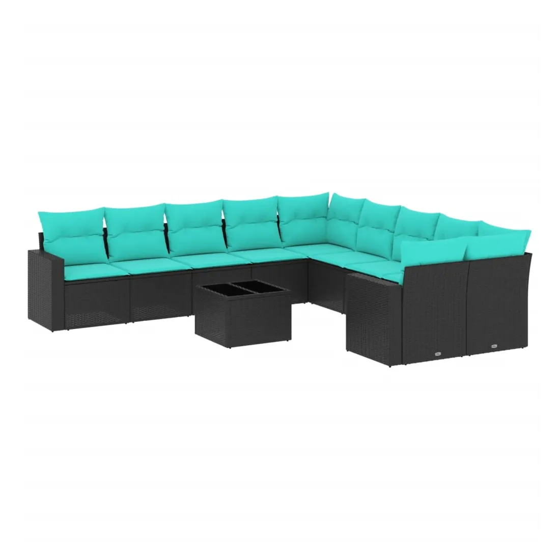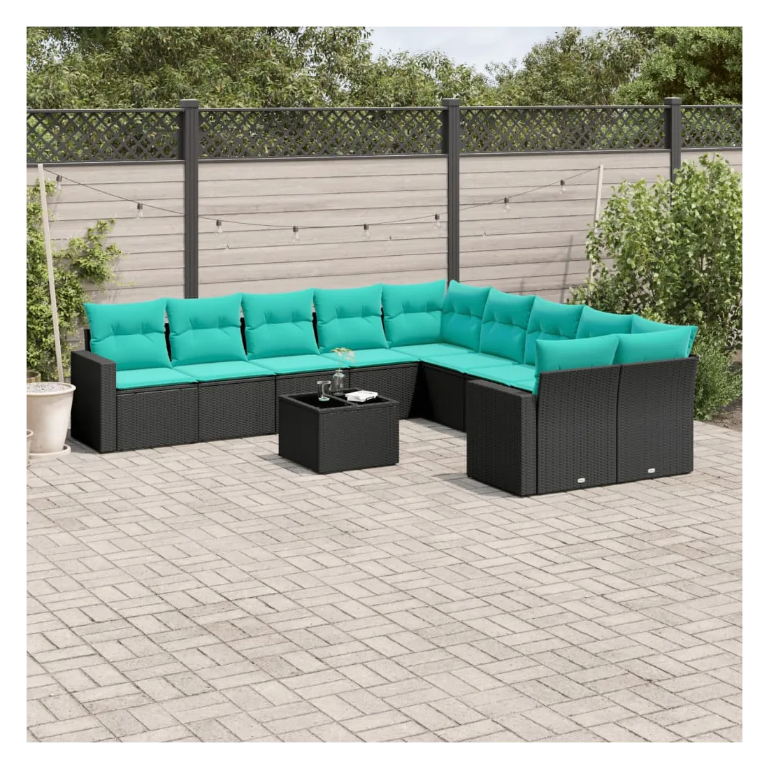 Salon de jardin 11 pcs avec coussins noir résine tressée