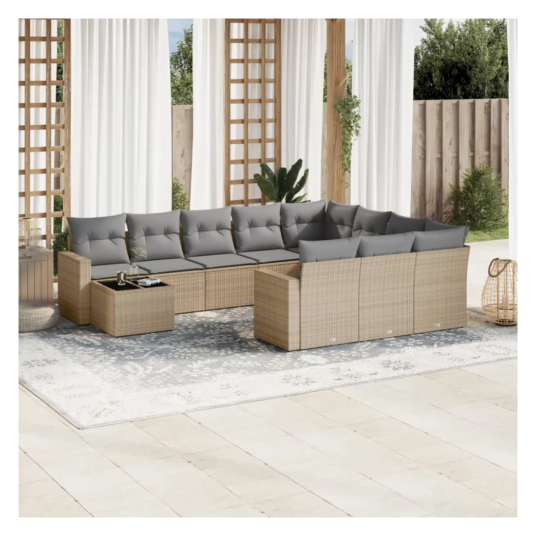 Cet ensemble de canapés de jardin est le complément parfait de votre arrière-cour, terrasse ou patio, offrant un espace confortable et accueillant pour discuter avec la famille et les amis ou simplement se détendre et profiter de l'extérieur. Matériau durable : la résine tressée, également connue sous le nom de poly rotin, est un matériau synthétique solide et nécessitant peu d'entretien qui ressemble au rotin naturel. Il est léger, facile à nettoyer et couramment utilisé pour les meubles d'extérieur en raison de sa durabilité et de ses propriétés de résistance aux intempéries.Dessus en verre : le dessus de la table d'extérieur est fabriqué en verre trempé solide et durable, ce qui le rend facile à nettoyer avec un chiffon humide et ajoute une touche d'élégance à votre espace extérieur. Expérience d'assise confortable : ce mobilier d'extérieur, doté de coussins épais, offre une expérience d'assise confortable. Housse amovible et lavable : ces coussins de siège sont dotés de housses amovibles pour un lavage et un entretien faciles.Conception modulaire : cet ensemble de meubles d'extérieur a une conception modulaire, ce qui le rend complètement flexible et facile à déplacer, afin que vous puissiez créer un agencement de meubles d'extérieur personnalisé. Bon à savoir :Pour que vos meubles d'extérieur restent beaux, nous vous recommandons de les protéger avec une housse imperméable.