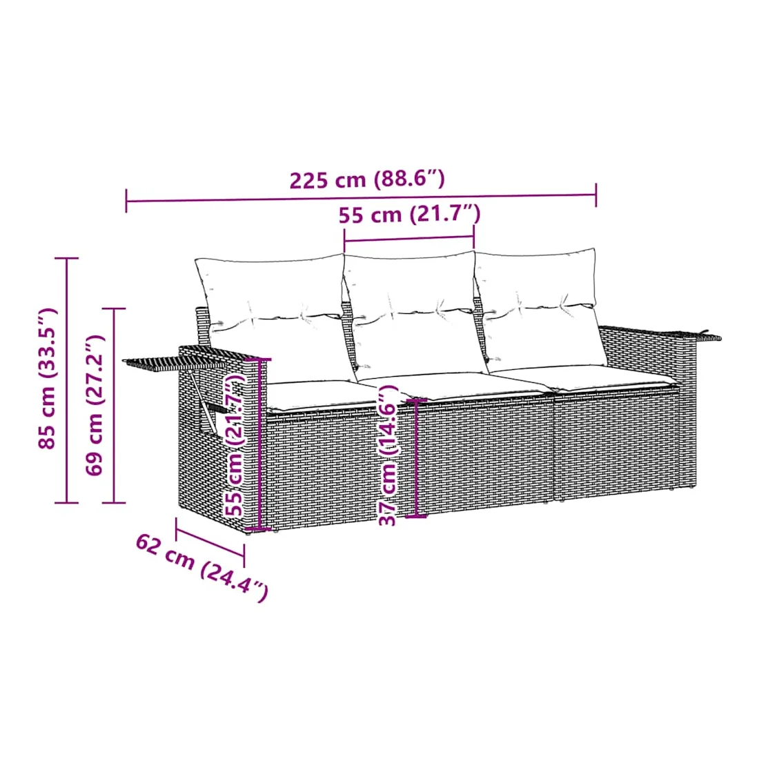 - Dimensions : 62/85 x 62 x 69 cm (l x P x H)