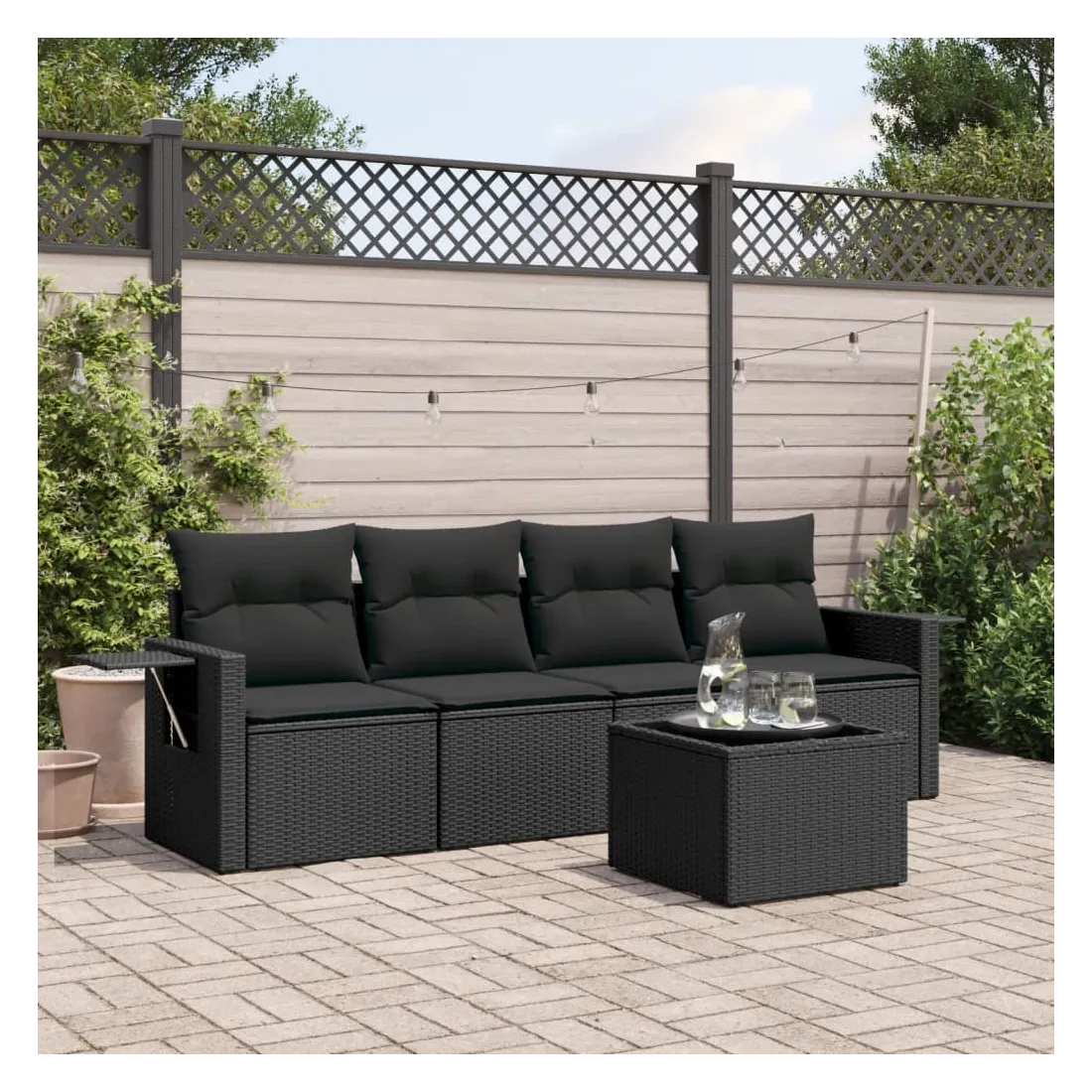 Cet ensemble de canapés de jardin est le complément parfait de votre arrière-cour, terrasse ou patio, offrant un espace confortable et accueillant pour discuter avec la famille et les amis ou simplement se détendre et profiter de l'extérieur. Matériau durable : la résine tressée, également connue sous le nom de poly rotin, est un matériau synthétique solide et nécessitant peu d'entretien qui ressemble au rotin naturel. Il est léger, facile à nettoyer et couramment utilisé pour les meubles d'extérieur en raison de sa durabilité et de ses propriétés de résistance aux intempéries.Dessus en verre : le dessus de la table d'extérieur est fabriqué en verre trempé solide et durable, ce qui le rend facile à nettoyer avec un chiffon humide et ajoute une touche d'élégance à votre espace extérieur. Table d'appoint pratique : ce mobilier d'extérieur comprend des tables d'appoint pliables avec un ressort à gaz sur les accoudoirs, offrant des endroits pratiques pour garder vos essentiels à portée de main. Expérience d'assise confortable : ce mobilier d'extérieur, doté de coussins épais, offre une expérience d'assise confortable.Conception modulaire : cet ensemble de meubles d'extérieur a une conception modulaire, ce qui le rend complètement flexible et facile à déplacer, afin que vous puissiez créer un agencement de meubles d'extérieur personnalisé. Bon à savoir :Pour que vos meubles d'extérieur restent beaux, nous vous recommandons de les protéger avec une housse imperméable.