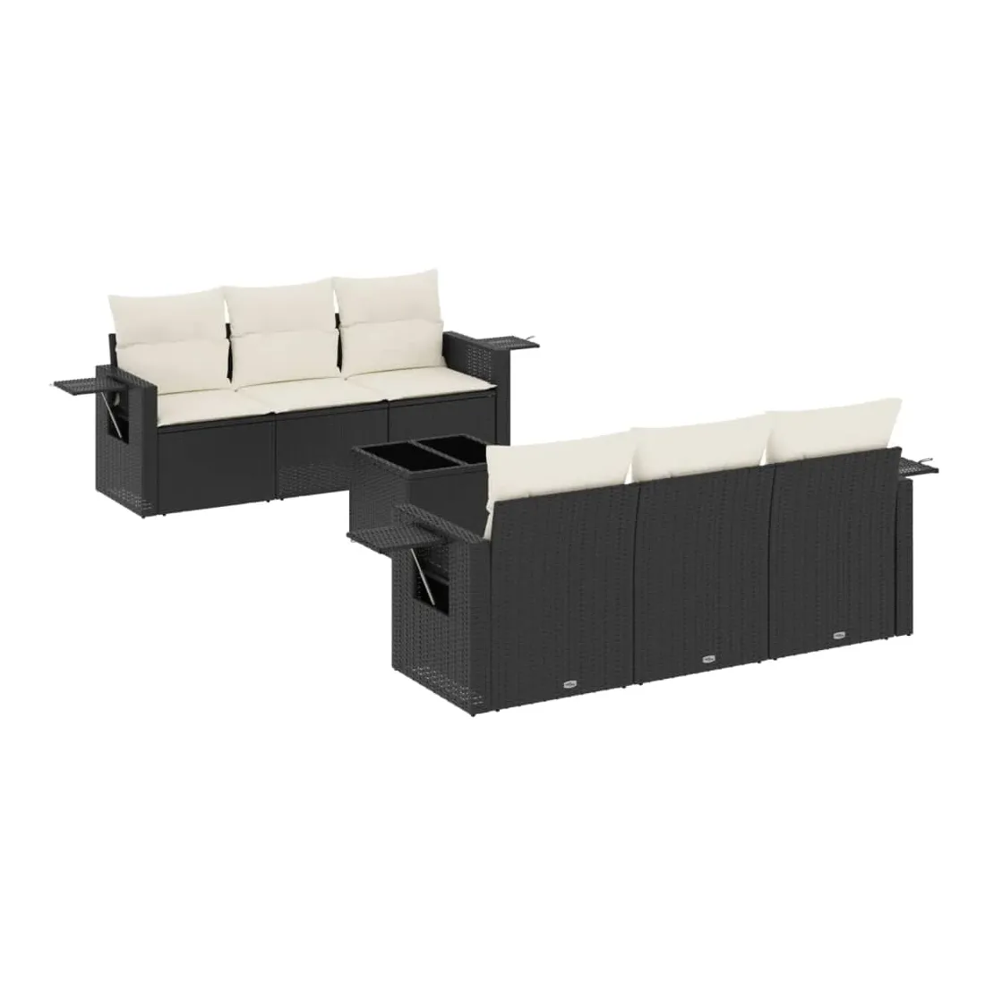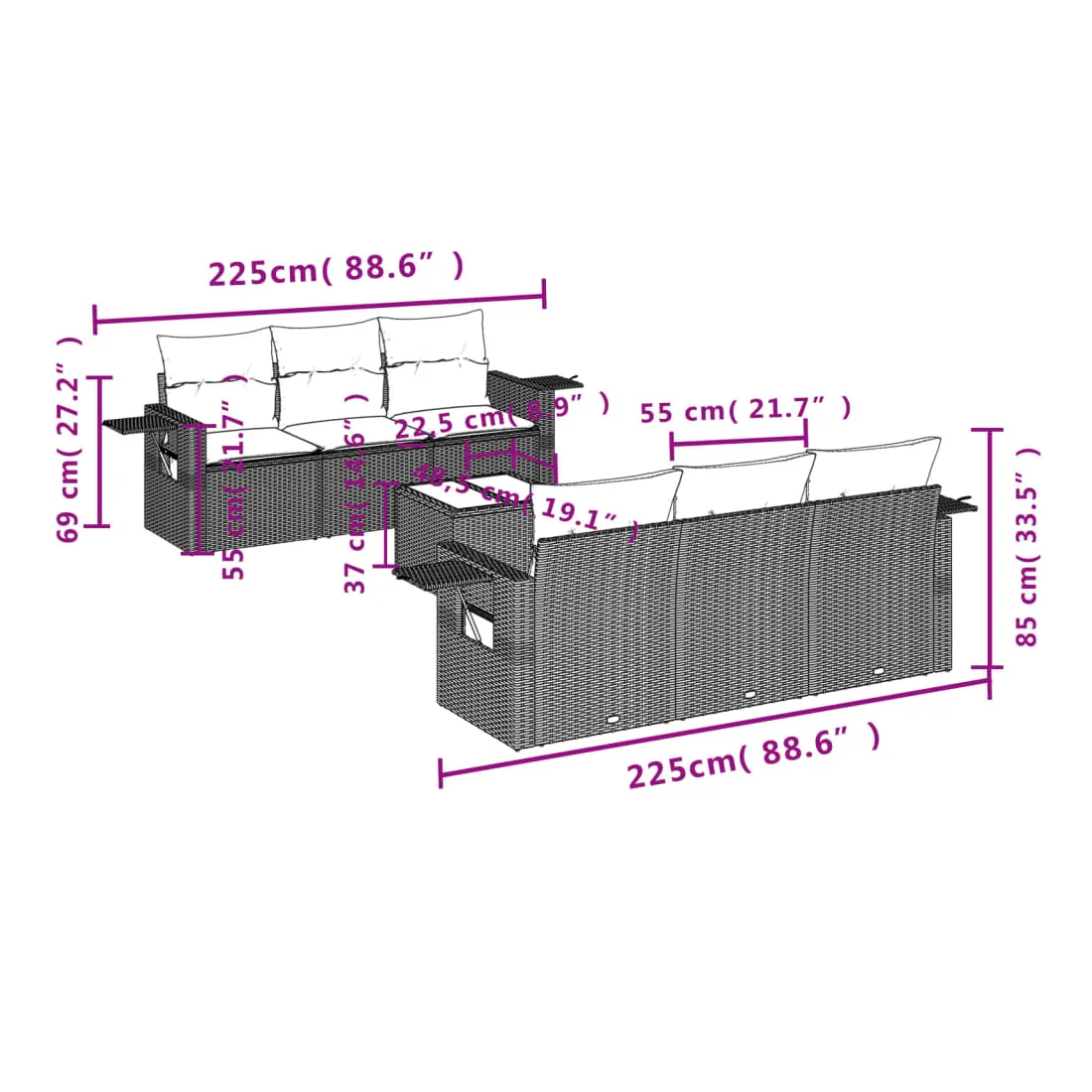 Cet ensemble de canapés de jardin est le complément parfait de votre arrière-cour, terrasse ou patio, offrant un espace confortable et accueillant pour discuter avec la famille et les amis ou simplement se détendre et profiter de l'extérieur. Matériau durable : la résine tressée, également connue sous le nom de poly rotin, est un matériau synthétique solide et nécessitant peu d'entretien qui ressemble au rotin naturel. Il est léger, facile à nettoyer et couramment utilisé pour les meubles d'extérieur en raison de sa durabilité et de ses propriétés de résistance aux intempéries.Dessus en verre : le dessus de la table d'extérieur est fabriqué en verre trempé solide et durable, ce qui le rend facile à nettoyer avec un chiffon humide et ajoute une touche d'élégance à votre espace extérieur. Table d'appoint pratique : ce mobilier d'extérieur comprend des tables d'appoint pliables avec un ressort à gaz sur les accoudoirs, offrant des endroits pratiques pour garder vos essentiels à portée de main. Expérience d'assise confortable : ce mobilier d'extérieur, doté de coussins épais, offre une expérience d'assise confortable.Conception modulaire : cet ensemble de meubles d'extérieur a une conception modulaire, ce qui le rend complètement flexible et facile à déplacer, afin que vous puissiez créer un agencement de meubles d'extérieur personnalisé. Bon à savoir :Pour que vos meubles d'extérieur restent beaux, nous vous recommandons de les protéger avec une housse imperméable.