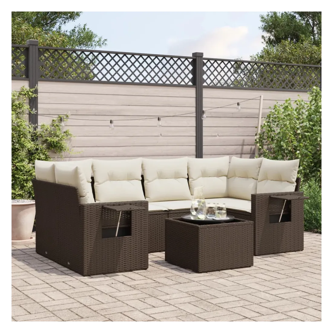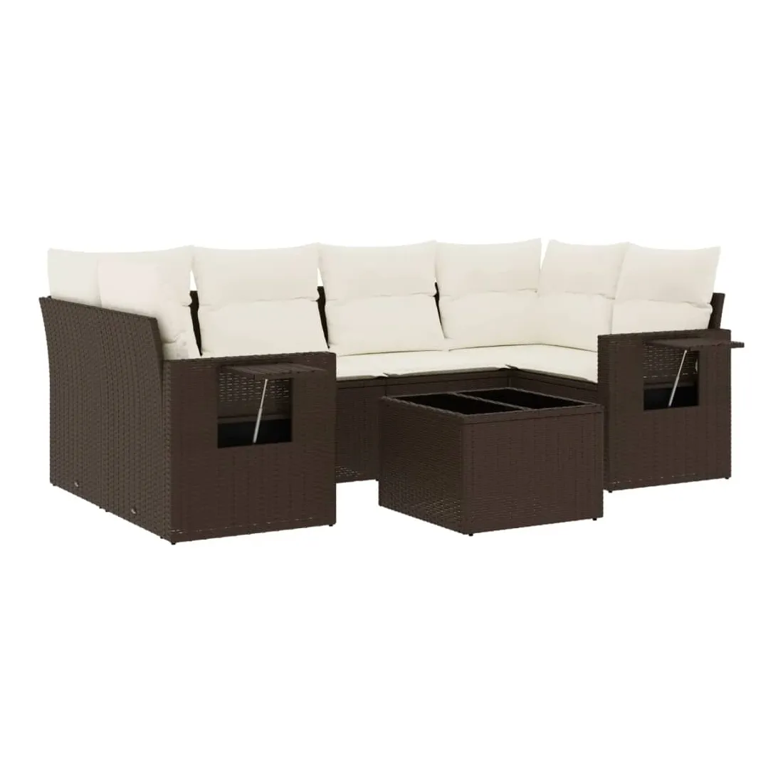 Cet ensemble de canapés de jardin est le complément parfait de votre arrière-cour, terrasse ou patio, offrant un espace confortable et accueillant pour discuter avec la famille et les amis ou simplement se détendre et profiter de l'extérieur. Matériau durable : la résine tressée, également connue sous le nom de poly rotin, est un matériau synthétique solide et nécessitant peu d'entretien qui ressemble au rotin naturel. Il est léger, facile à nettoyer et couramment utilisé pour les meubles d'extérieur en raison de sa durabilité et de ses propriétés de résistance aux intempéries.Dessus en verre : le dessus de la table d'extérieur est fabriqué en verre trempé solide et durable, ce qui le rend facile à nettoyer avec un chiffon humide et ajoute une touche d'élégance à votre espace extérieur. Table d'appoint pratique : ce mobilier d'extérieur comprend des tables d'appoint pliables avec un ressort à gaz sur les accoudoirs, offrant des endroits pratiques pour garder vos essentiels à portée de main. Expérience d'assise confortable : ce mobilier d'extérieur, doté de coussins épais, offre une expérience d'assise confortable.Conception modulaire : cet ensemble de meubles d'extérieur a une conception modulaire, ce qui le rend complètement flexible et facile à déplacer, afin que vous puissiez créer un agencement de meubles d'extérieur personnalisé. Bon à savoir :Pour que vos meubles d'extérieur restent beaux, nous vous recommandons de les protéger avec une housse imperméable.