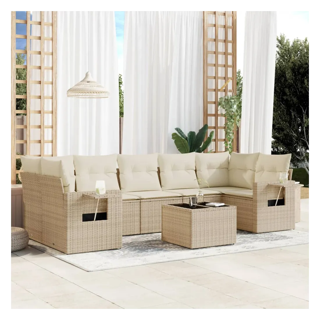 Cet ensemble de canapés de jardin est le complément parfait de votre arrière-cour, terrasse ou patio, offrant un espace confortable et accueillant pour discuter avec la famille et les amis ou simplement se détendre et profiter de l'extérieur. Matériau durable : la résine tressée, également connue sous le nom de poly rotin, est un matériau synthétique solide et nécessitant peu d'entretien qui ressemble au rotin naturel. Il est léger, facile à nettoyer et couramment utilisé pour les meubles d'extérieur en raison de sa durabilité et de ses propriétés de résistance aux intempéries.Dessus en verre : le dessus de la table d'extérieur est fabriqué en verre trempé solide et durable, ce qui le rend facile à nettoyer avec un chiffon humide et ajoute une touche d'élégance à votre espace extérieur. Table d'appoint pratique : ce mobilier d'extérieur comprend des tables d'appoint pliables avec un ressort à gaz sur les accoudoirs, offrant des endroits pratiques pour garder vos essentiels à portée de main. Expérience d'assise confortable : ce mobilier d'extérieur, doté de coussins épais, offre une expérience d'assise confortable.Conception modulaire : cet ensemble de meubles d'extérieur a une conception modulaire, ce qui le rend complètement flexible et facile à déplacer, afin que vous puissiez créer un agencement de meubles d'extérieur personnalisé. Bon à savoir :Pour que vos meubles d'extérieur restent beaux, nous vous recommandons de les protéger avec une housse imperméable.