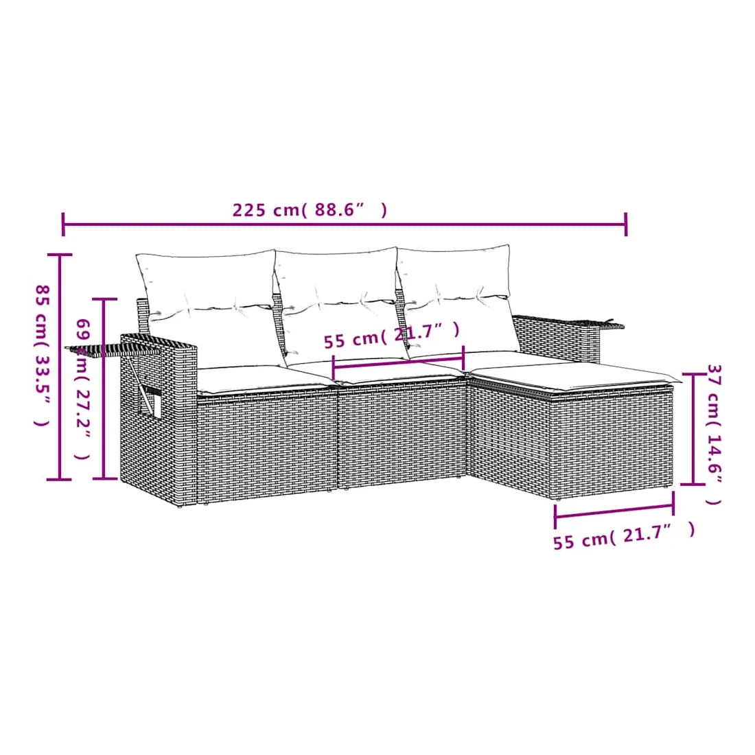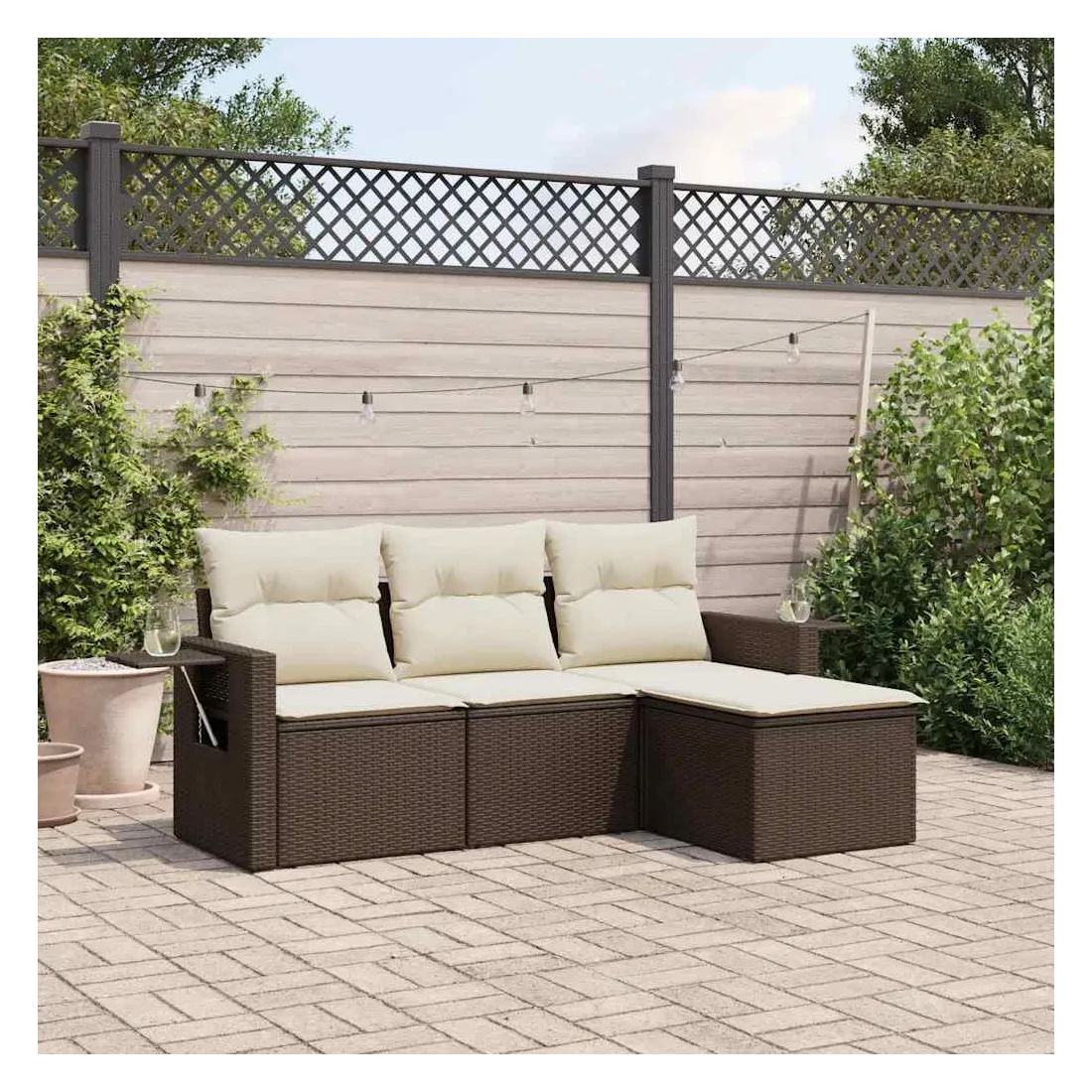 Cet ensemble de canapés de jardin est le complément parfait de votre arrière-cour, terrasse ou patio, offrant un espace confortable et accueillant pour discuter avec la famille et les amis ou simplement se détendre et profiter de l'extérieur. Matériau durable : la résine tressée, également connue sous le nom de poly rotin, est un matériau synthétique solide et nécessitant peu d'entretien qui ressemble au rotin naturel. Il est léger, facile à nettoyer et couramment utilisé pour les meubles d'extérieur en raison de sa durabilité et de ses propriétés de résistance aux intempéries. Table d'appoint pratique : ce mobilier d'extérieur comprend des tables d'appoint pliables avec un ressort à gaz sur les accoudoirs, offrant des endroits pratiques pour garder vos essentiels à portée de main. Expérience d'assise confortable : ce mobilier d'extérieur, doté de coussins épais, offre une expérience d'assise confortable. Housse amovible et lavable : ces coussins de siège sont dotés de housses amovibles pour un lavage et un entretien faciles.Conception modulaire : cet ensemble de meubles d'extérieur a une conception modulaire, ce qui le rend complètement flexible et facile à déplacer, afin que vous puissiez créer un agencement de meubles d'extérieur personnalisé. Bon à savoir :Pour que vos meubles d'extérieur restent beaux, nous vous recommandons de les protéger avec une housse imperméable.