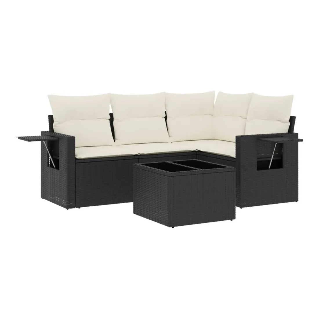 Cet ensemble de canapés de jardin est le complément parfait de votre arrière-cour, terrasse ou patio, offrant un espace confortable et accueillant pour discuter avec la famille et les amis ou simplement se détendre et profiter de l'extérieur. Matériau durable : la résine tressée, également connue sous le nom de poly rotin, est un matériau synthétique solide et nécessitant peu d'entretien qui ressemble au rotin naturel. Il est léger, facile à nettoyer et couramment utilisé pour les meubles d'extérieur en raison de sa durabilité et de ses propriétés de résistance aux intempéries.Dessus en verre : le dessus de la table d'extérieur est fabriqué en verre trempé solide et durable, ce qui le rend facile à nettoyer avec un chiffon humide et ajoute une touche d'élégance à votre espace extérieur. Table d'appoint pratique : ce mobilier d'extérieur comprend des tables d'appoint pliables avec un ressort à gaz sur les accoudoirs, offrant des endroits pratiques pour garder vos essentiels à portée de main. Expérience d'assise confortable : ce mobilier d'extérieur, doté de coussins épais, offre une expérience d'assise confortable.Conception modulaire : cet ensemble de meubles d'extérieur a une conception modulaire, ce qui le rend complètement flexible et facile à déplacer, afin que vous puissiez créer un agencement de meubles d'extérieur personnalisé. Bon à savoir :Pour que vos meubles d'extérieur restent beaux, nous vous recommandons de les protéger avec une housse imperméable.
