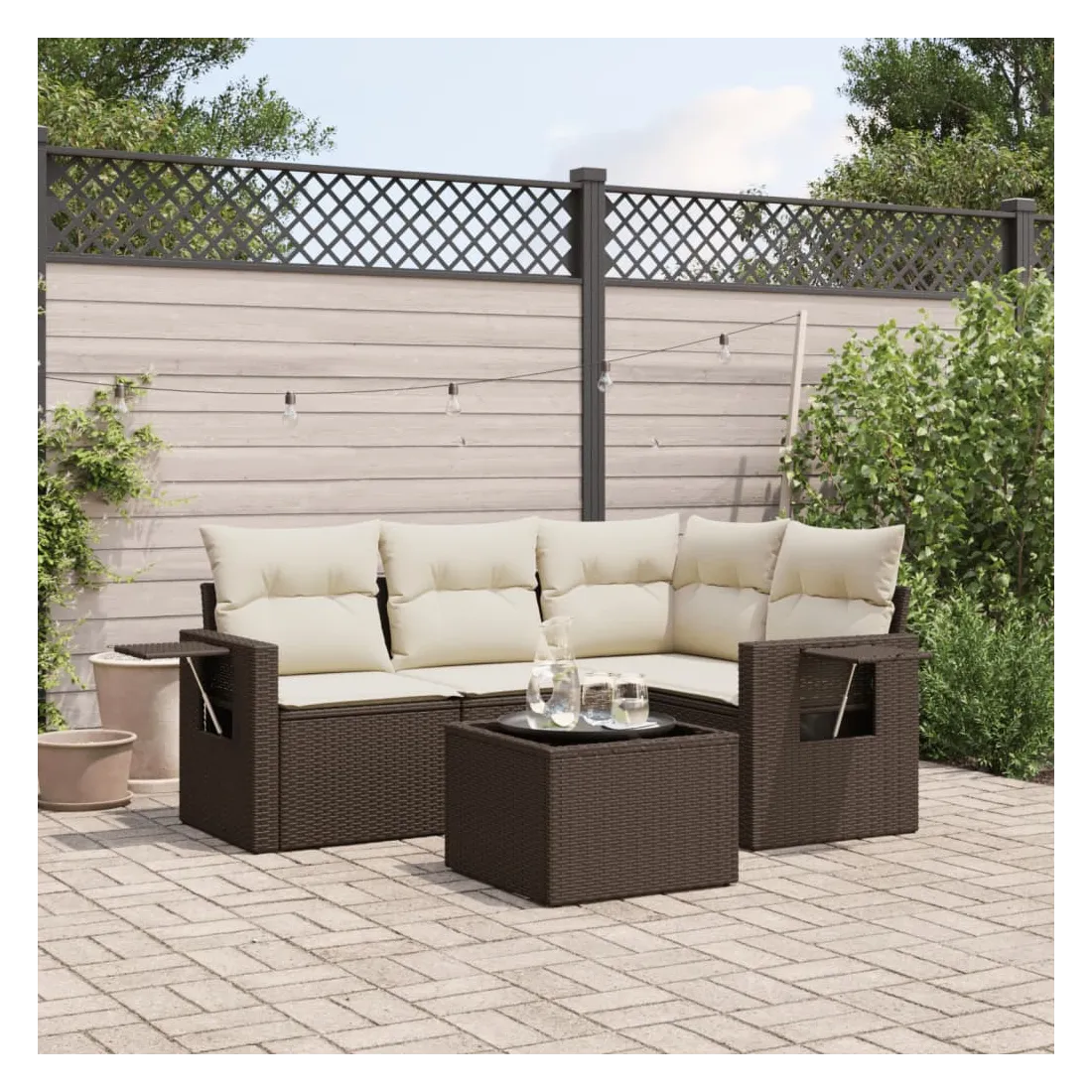 Cet ensemble de canapés de jardin est le complément parfait de votre arrière-cour, terrasse ou patio, offrant un espace confortable et accueillant pour discuter avec la famille et les amis ou simplement se détendre et profiter de l'extérieur. Matériau durable : la résine tressée, également connue sous le nom de poly rotin, est un matériau synthétique solide et nécessitant peu d'entretien qui ressemble au rotin naturel. Il est léger, facile à nettoyer et couramment utilisé pour les meubles d'extérieur en raison de sa durabilité et de ses propriétés de résistance aux intempéries.Dessus en verre : le dessus de la table d'extérieur est fabriqué en verre trempé solide et durable, ce qui le rend facile à nettoyer avec un chiffon humide et ajoute une touche d'élégance à votre espace extérieur. Table d'appoint pratique : ce mobilier d'extérieur comprend des tables d'appoint pliables avec un ressort à gaz sur les accoudoirs, offrant des endroits pratiques pour garder vos essentiels à portée de main. Expérience d'assise confortable : ce mobilier d'extérieur, doté de coussins épais, offre une expérience d'assise confortable.Conception modulaire : cet ensemble de meubles d'extérieur a une conception modulaire, ce qui le rend complètement flexible et facile à déplacer, afin que vous puissiez créer un agencement de meubles d'extérieur personnalisé. Bon à savoir :Pour que vos meubles d'extérieur restent beaux, nous vous recommandons de les protéger avec une housse imperméable.