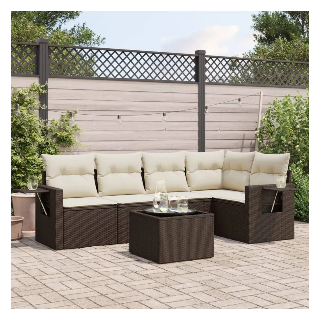 Cet ensemble de canapés de jardin est le complément parfait de votre arrière-cour, terrasse ou patio, offrant un espace confortable et accueillant pour discuter avec la famille et les amis ou simplement se détendre et profiter de l'extérieur. Matériau durable : la résine tressée, également connue sous le nom de poly rotin, est un matériau synthétique solide et nécessitant peu d'entretien qui ressemble au rotin naturel. Il est léger, facile à nettoyer et couramment utilisé pour les meubles d'extérieur en raison de sa durabilité et de ses propriétés de résistance aux intempéries.Dessus en verre : le dessus de la table d'extérieur est fabriqué en verre trempé solide et durable, ce qui le rend facile à nettoyer avec un chiffon humide et ajoute une touche d'élégance à votre espace extérieur. Table d'appoint pratique : ce mobilier d'extérieur comprend des tables d'appoint pliables avec un ressort à gaz sur les accoudoirs, offrant des endroits pratiques pour garder vos essentiels à portée de main. Expérience d'assise confortable : ce mobilier d'extérieur, doté de coussins épais, offre une expérience d'assise confortable.Conception modulaire : cet ensemble de meubles d'extérieur a une conception modulaire, ce qui le rend complètement flexible et facile à déplacer, afin que vous puissiez créer un agencement de meubles d'extérieur personnalisé. Bon à savoir :Pour que vos meubles d'extérieur restent beaux, nous vous recommandons de les protéger avec une housse imperméable.