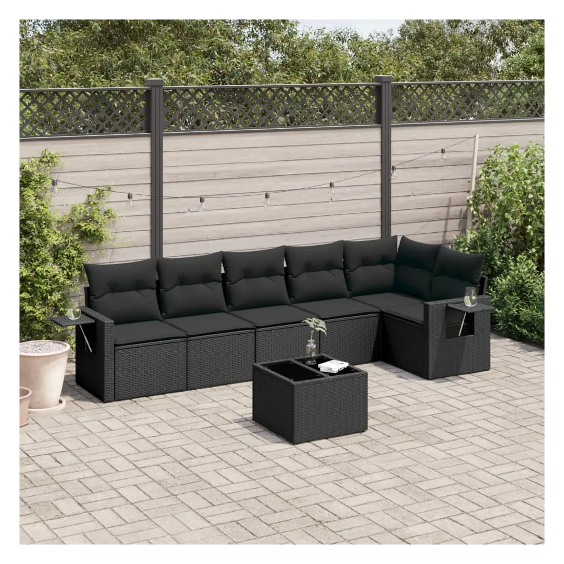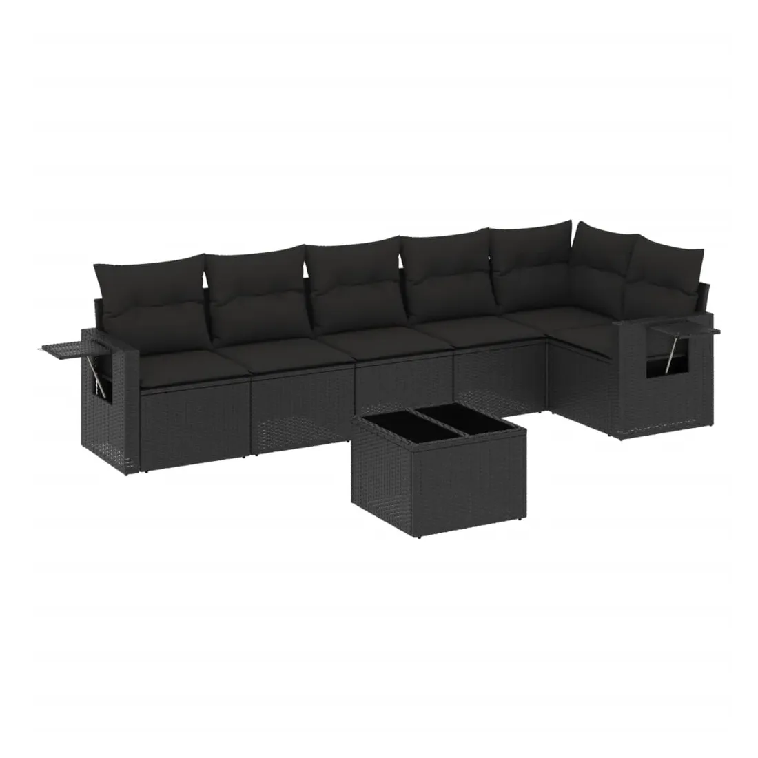 Salon de jardin 7 pcs avec coussins noir résine tressée
