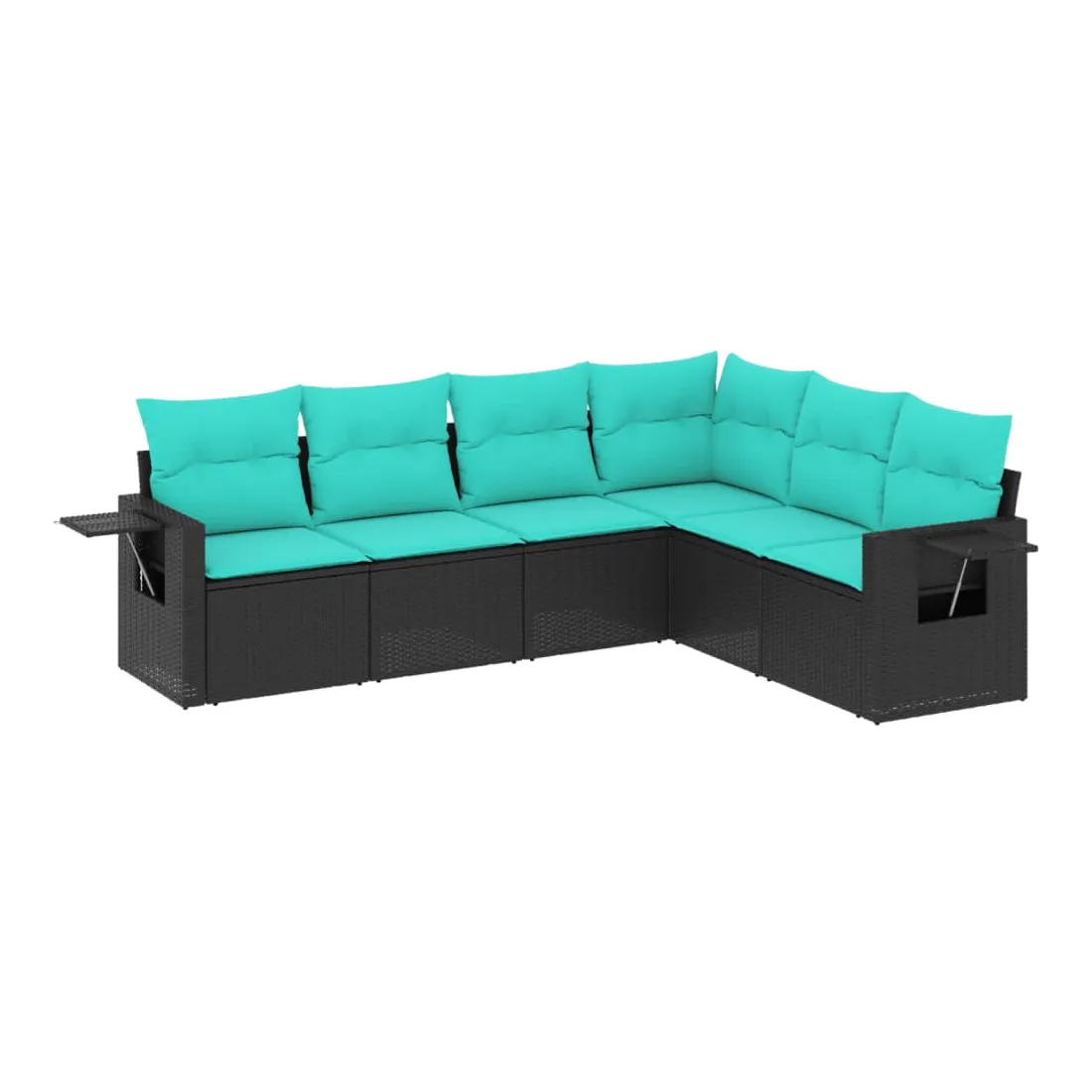 Salon de jardin 6 pcs avec coussins noir résine tressée