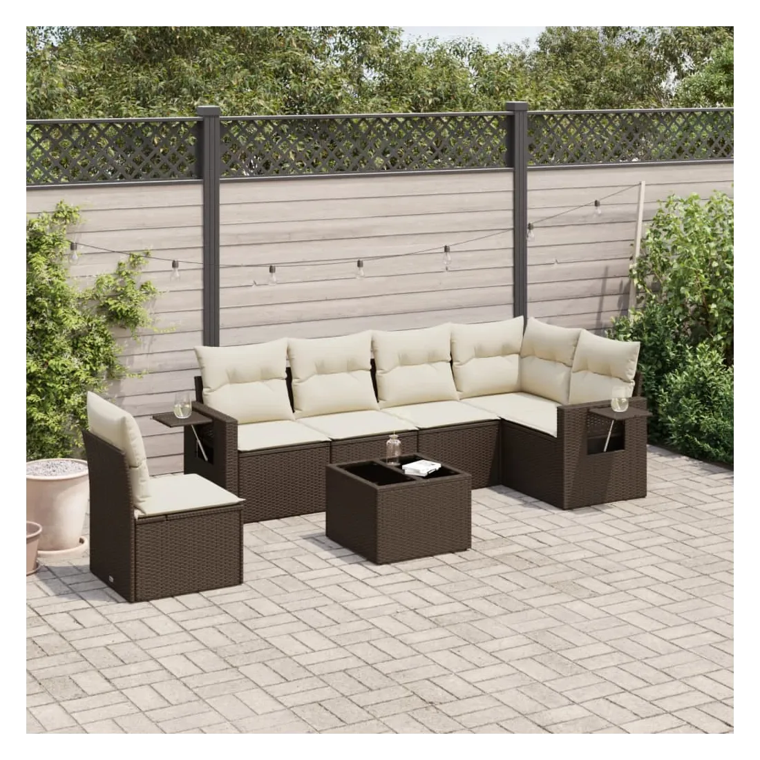 Cet ensemble de canapés de jardin est le complément parfait de votre arrière-cour, terrasse ou patio, offrant un espace confortable et accueillant pour discuter avec la famille et les amis ou simplement se détendre et profiter de l'extérieur. Matériau durable : la résine tressée, également connue sous le nom de poly rotin, est un matériau synthétique solide et nécessitant peu d'entretien qui ressemble au rotin naturel. Il est léger, facile à nettoyer et couramment utilisé pour les meubles d'extérieur en raison de sa durabilité et de ses propriétés de résistance aux intempéries.Dessus en verre : le dessus de la table d'extérieur est fabriqué en verre trempé solide et durable, ce qui le rend facile à nettoyer avec un chiffon humide et ajoute une touche d'élégance à votre espace extérieur. Table d'appoint pratique : ce mobilier d'extérieur comprend des tables d'appoint pliables avec un ressort à gaz sur les accoudoirs, offrant des endroits pratiques pour garder vos essentiels à portée de main. Expérience d'assise confortable : ce mobilier d'extérieur, doté de coussins épais, offre une expérience d'assise confortable.Conception modulaire : cet ensemble de meubles d'extérieur a une conception modulaire, ce qui le rend complètement flexible et facile à déplacer, afin que vous puissiez créer un agencement de meubles d'extérieur personnalisé. Bon à savoir :Pour que vos meubles d'extérieur restent beaux, nous vous recommandons de les protéger avec une housse imperméable.