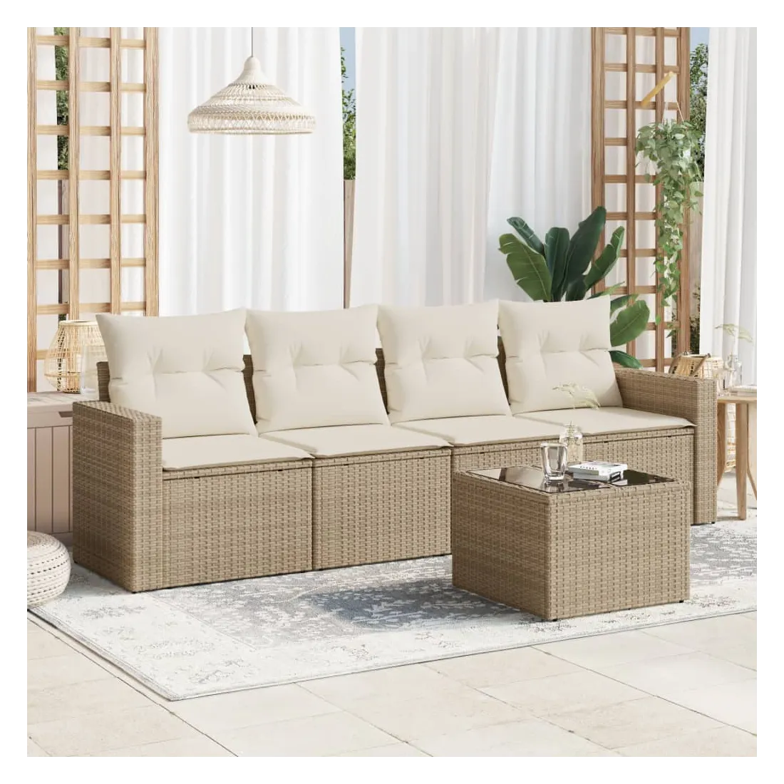 Cet ensemble de canapés de jardin est le complément parfait de votre arrière-cour, terrasse ou patio, offrant un espace confortable et accueillant pour discuter avec la famille et les amis ou simplement se détendre et profiter de l'extérieur. Matériau durable : la résine tressée, également connue sous le nom de poly rotin, est un matériau synthétique solide et nécessitant peu d'entretien qui ressemble au rotin naturel. Il est léger, facile à nettoyer et couramment utilisé pour les meubles d'extérieur en raison de sa durabilité et de ses propriétés de résistance aux intempéries.Expérience d'assise confortable : ce mobilier d'extérieur, doté de coussins épais, offre une expérience d'assise confortable. Les larges accoudoirs offrent également un endroit pratique pour garder votre téléphone portable, vos tasses ou d'autres petits objets à portée de main.Housse amovible et lavable : ces coussins de siège sont dotés de housses amovibles pour un lavage et un entretien faciles.Dessus en verre : le dessus de la table d'extérieur est fabriqué en verre trempé solide et durable, ce qui le rend facile à nettoyer avec un chiffon humide et ajoute une touche d'élégance à votre espace extérieur.Conception modulaire : cet ensemble de meubles d'extérieur a une conception modulaire, ce qui le rend complètement flexible et facile à déplacer, afin que vous puissiez créer un agencement de meubles d'extérieur personnalisé. Bon à savoir :Pour que vos meubles d'extérieur restent beaux, nous vous recommandons de les protéger avec une housse imperméable.