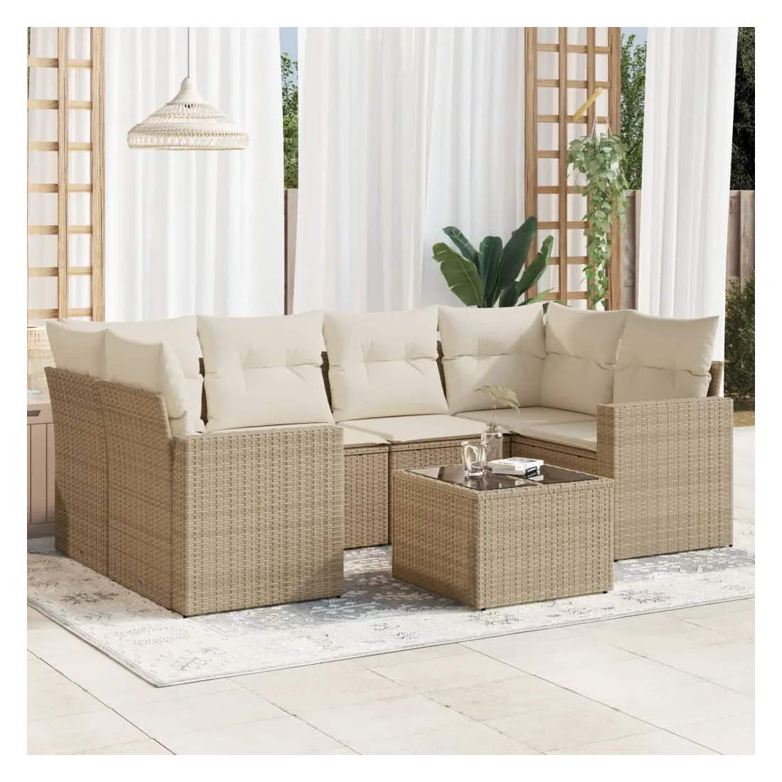 Cet ensemble de canapés de jardin est le complément parfait de votre arrière-cour, terrasse ou patio, offrant un espace confortable et accueillant pour discuter avec la famille et les amis ou simplement se détendre et profiter de l'extérieur. Matériau durable : la résine tressée, également connue sous le nom de poly rotin, est un matériau synthétique solide et nécessitant peu d'entretien qui ressemble au rotin naturel. Il est léger, facile à nettoyer et couramment utilisé pour les meubles d'extérieur en raison de sa durabilité et de ses propriétés de résistance aux intempéries.Expérience d'assise confortable : ce mobilier d'extérieur, doté de coussins épais, offre une expérience d'assise confortable. Les larges accoudoirs offrent également un endroit pratique pour garder votre téléphone portable, vos tasses ou d'autres petits objets à portée de main.Housse amovible et lavable : ces coussins de siège sont dotés de housses amovibles pour un lavage et un entretien faciles.Dessus en verre : le dessus de la table d'extérieur est fabriqué en verre trempé solide et durable, ce qui le rend facile à nettoyer avec un chiffon humide et ajoute une touche d'élégance à votre espace extérieur.Conception modulaire : cet ensemble de meubles d'extérieur a une conception modulaire, ce qui le rend complètement flexible et facile à déplacer, afin que vous puissiez créer un agencement de meubles d'extérieur personnalisé. Bon à savoir :Pour que vos meubles d'extérieur restent beaux, nous vous recommandons de les protéger avec une housse imperméable.