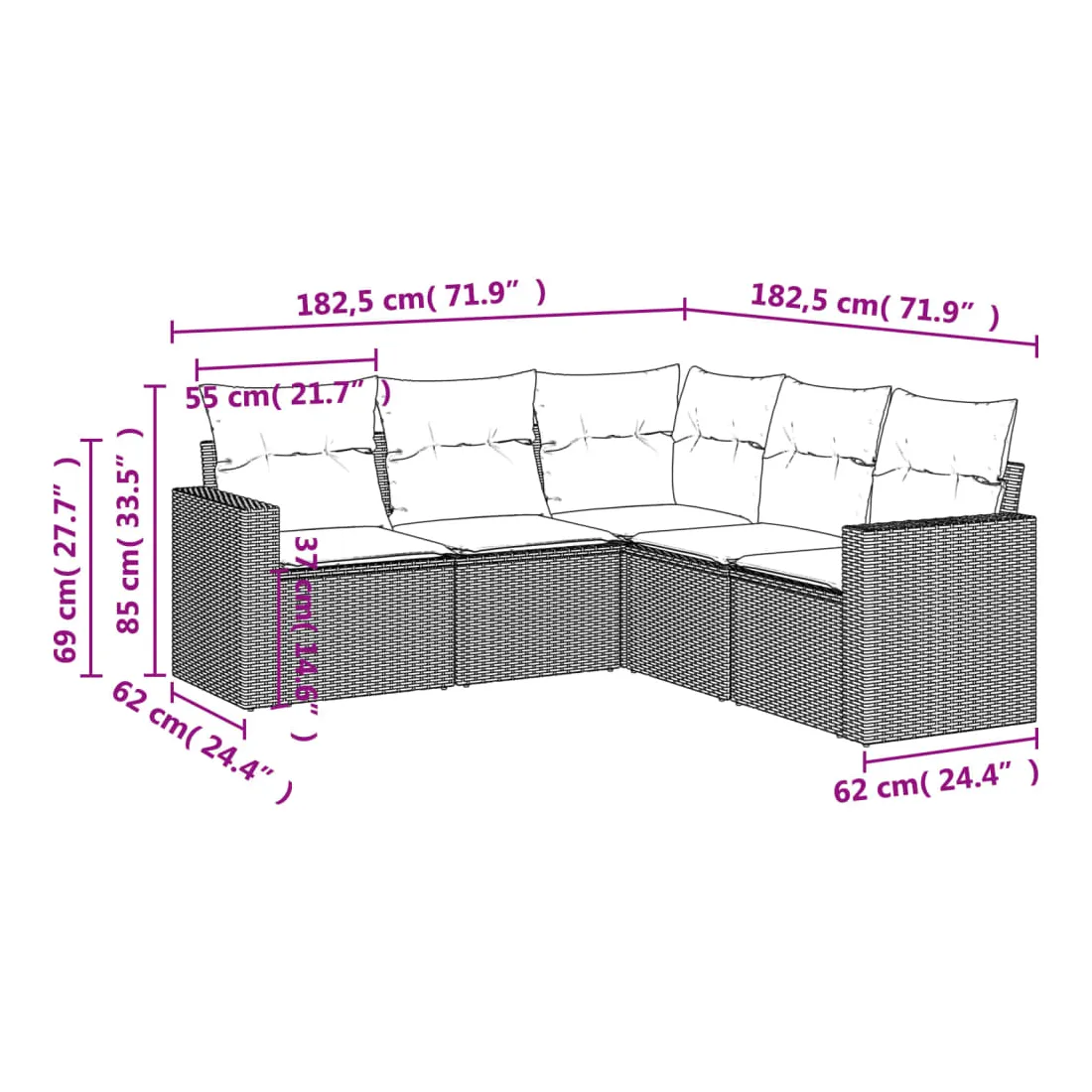 Salon de jardin avec coussins 5 pcs beige résine tressée