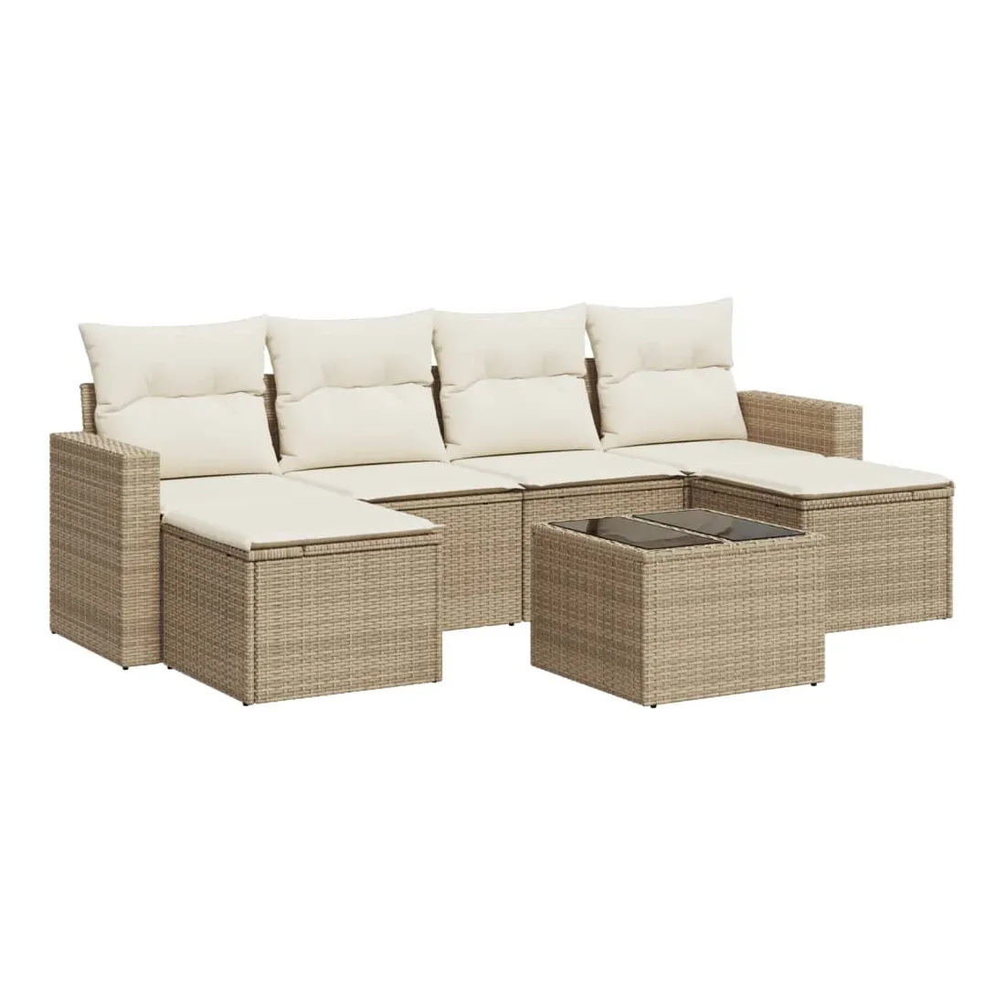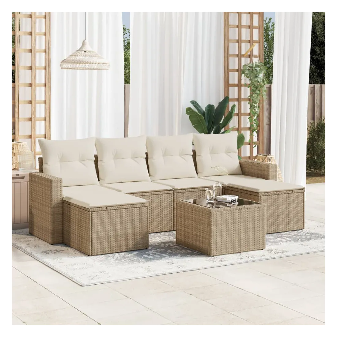 Cet ensemble de canapés de jardin est le complément parfait de votre arrière-cour, terrasse ou patio, offrant un espace confortable et accueillant pour discuter avec la famille et les amis ou simplement se détendre et profiter de l'extérieur. Matériau durable : la résine tressée, également connue sous le nom de poly rotin, est un matériau synthétique solide et nécessitant peu d'entretien qui ressemble au rotin naturel. Il est léger, facile à nettoyer et couramment utilisé pour les meubles d'extérieur en raison de sa durabilité et de ses propriétés de résistance aux intempéries.Expérience d'assise confortable : ce mobilier d'extérieur, doté de coussins épais, offre une expérience d'assise confortable. Les larges accoudoirs offrent également un endroit pratique pour garder votre téléphone portable, vos tasses ou d'autres petits objets à portée de main.Housse amovible et lavable : ces coussins de siège sont dotés de housses amovibles pour un lavage et un entretien faciles.Dessus en verre : le dessus de la table d'extérieur est fabriqué en verre trempé solide et durable, ce qui le rend facile à nettoyer avec un chiffon humide et ajoute une touche d'élégance à votre espace extérieur.Conception modulaire : cet ensemble de meubles d'extérieur a une conception modulaire, ce qui le rend complètement flexible et facile à déplacer, afin que vous puissiez créer un agencement de meubles d'extérieur personnalisé. Bon à savoir :Pour que vos meubles d'extérieur restent beaux, nous vous recommandons de les protéger avec une housse imperméable.