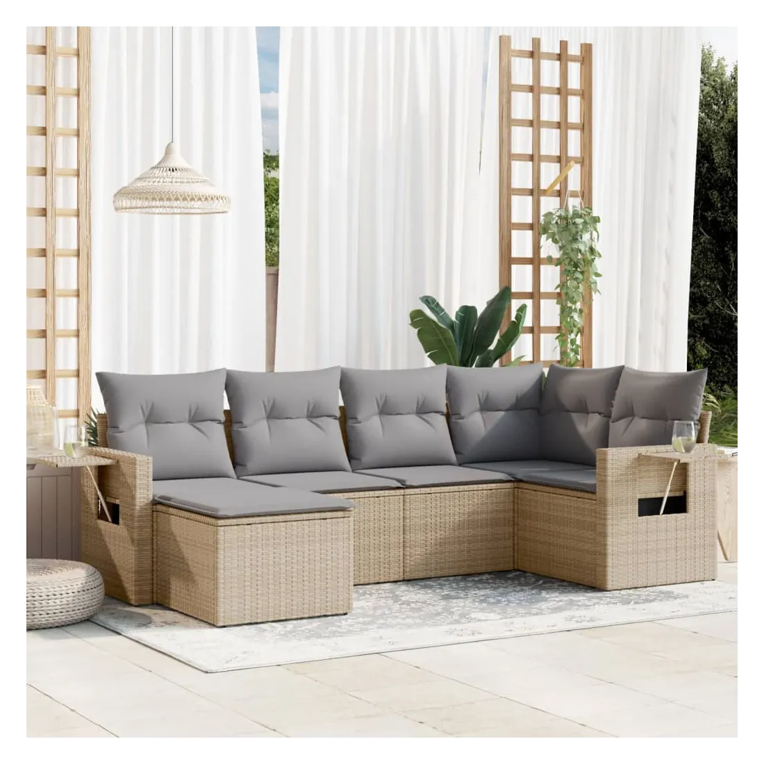 Cet ensemble de canapés de jardin est le complément parfait de votre arrière-cour, terrasse ou patio, offrant un espace confortable et accueillant pour discuter avec la famille et les amis ou simplement se détendre et profiter de l'extérieur. Matériau durable : la résine tressée, également connue sous le nom de poly rotin, est un matériau synthétique solide et nécessitant peu d'entretien qui ressemble au rotin naturel. Il est léger, facile à nettoyer et couramment utilisé pour les meubles d'extérieur en raison de sa durabilité et de ses propriétés de résistance aux intempéries. Table d'appoint pratique : ce mobilier d'extérieur comprend des tables d'appoint pliables avec un ressort à gaz sur les accoudoirs, offrant des endroits pratiques pour garder vos essentiels à portée de main. Expérience d'assise confortable : ce mobilier d'extérieur, doté de coussins épais, offre une expérience d'assise confortable. Housse amovible et lavable : ces coussins de siège sont dotés de housses amovibles pour un lavage et un entretien faciles.Conception modulaire : cet ensemble de meubles d'extérieur a une conception modulaire, ce qui le rend complètement flexible et facile à déplacer, afin que vous puissiez créer un agencement de meubles d'extérieur personnalisé. Bon à savoir :Pour que vos meubles d'extérieur restent beaux, nous vous recommandons de les protéger avec une housse imperméable.