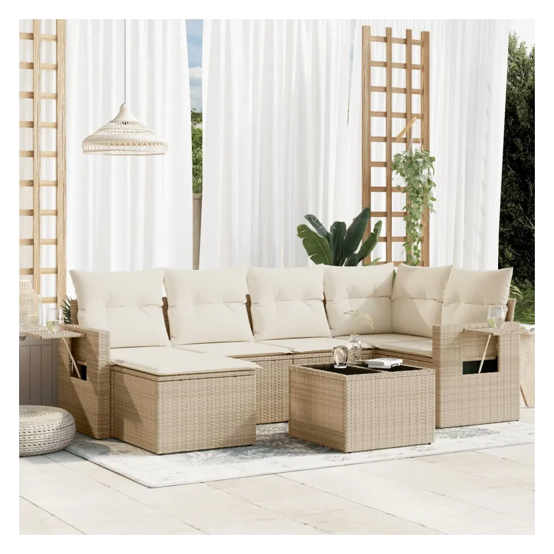 Cet ensemble de canapés de jardin est le complément parfait de votre arrière-cour, terrasse ou patio, offrant un espace confortable et accueillant pour discuter avec la famille et les amis ou simplement se détendre et profiter de l'extérieur. Matériau durable : la résine tressée, également connue sous le nom de poly rotin, est un matériau synthétique solide et nécessitant peu d'entretien qui ressemble au rotin naturel. Il est léger, facile à nettoyer et couramment utilisé pour les meubles d'extérieur en raison de sa durabilité et de ses propriétés de résistance aux intempéries.Dessus en verre : le dessus de la table d'extérieur est fabriqué en verre trempé solide et durable, ce qui le rend facile à nettoyer avec un chiffon humide et ajoute une touche d'élégance à votre espace extérieur. Table d'appoint pratique : ce mobilier d'extérieur comprend des tables d'appoint pliables avec un ressort à gaz sur les accoudoirs, offrant des endroits pratiques pour garder vos essentiels à portée de main. Expérience d'assise confortable : ce mobilier d'extérieur, doté de coussins épais, offre une expérience d'assise confortable.Conception modulaire : cet ensemble de meubles d'extérieur a une conception modulaire, ce qui le rend complètement flexible et facile à déplacer, afin que vous puissiez créer un agencement de meubles d'extérieur personnalisé. Bon à savoir :Pour que vos meubles d'extérieur restent beaux, nous vous recommandons de les protéger avec une housse imperméable.