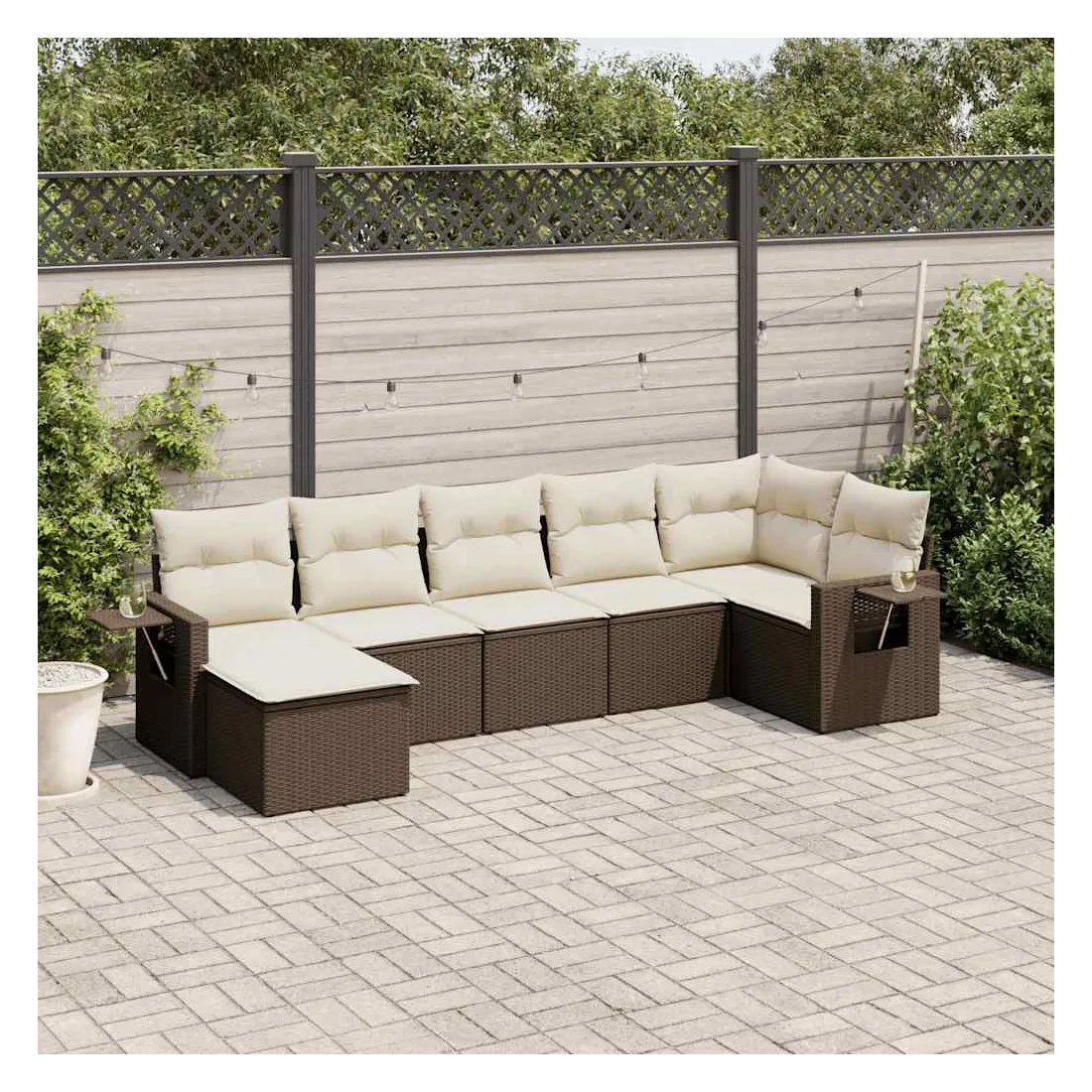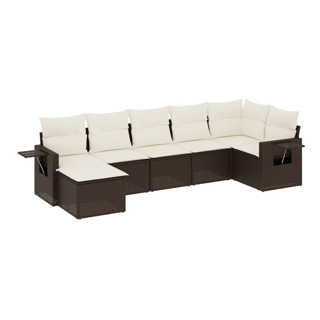 Salon de jardin avec coussins 7 pcs marron résine tressée