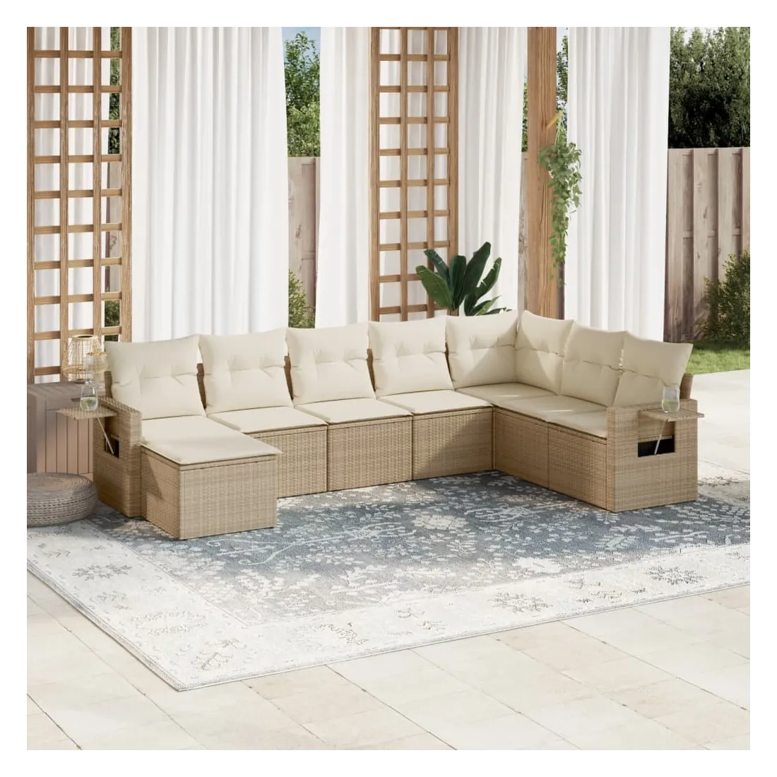 Cet ensemble de canapés de jardin est le complément parfait de votre arrière-cour, terrasse ou patio, offrant un espace confortable et accueillant pour discuter avec la famille et les amis ou simplement se détendre et profiter de l'extérieur. Matériau durable : la résine tressée, également connue sous le nom de poly rotin, est un matériau synthétique solide et nécessitant peu d'entretien qui ressemble au rotin naturel. Il est léger, facile à nettoyer et couramment utilisé pour les meubles d'extérieur en raison de sa durabilité et de ses propriétés de résistance aux intempéries. Table d'appoint pratique : ce mobilier d'extérieur comprend des tables d'appoint pliables avec un ressort à gaz sur les accoudoirs, offrant des endroits pratiques pour garder vos essentiels à portée de main. Expérience d'assise confortable : ce mobilier d'extérieur, doté de coussins épais, offre une expérience d'assise confortable. Housse amovible et lavable : ces coussins de siège sont dotés de housses amovibles pour un lavage et un entretien faciles.Conception modulaire : cet ensemble de meubles d'extérieur a une conception modulaire, ce qui le rend complètement flexible et facile à déplacer, afin que vous puissiez créer un agencement de meubles d'extérieur personnalisé. Bon à savoir :Pour que vos meubles d'extérieur restent beaux, nous vous recommandons de les protéger avec une housse imperméable.
