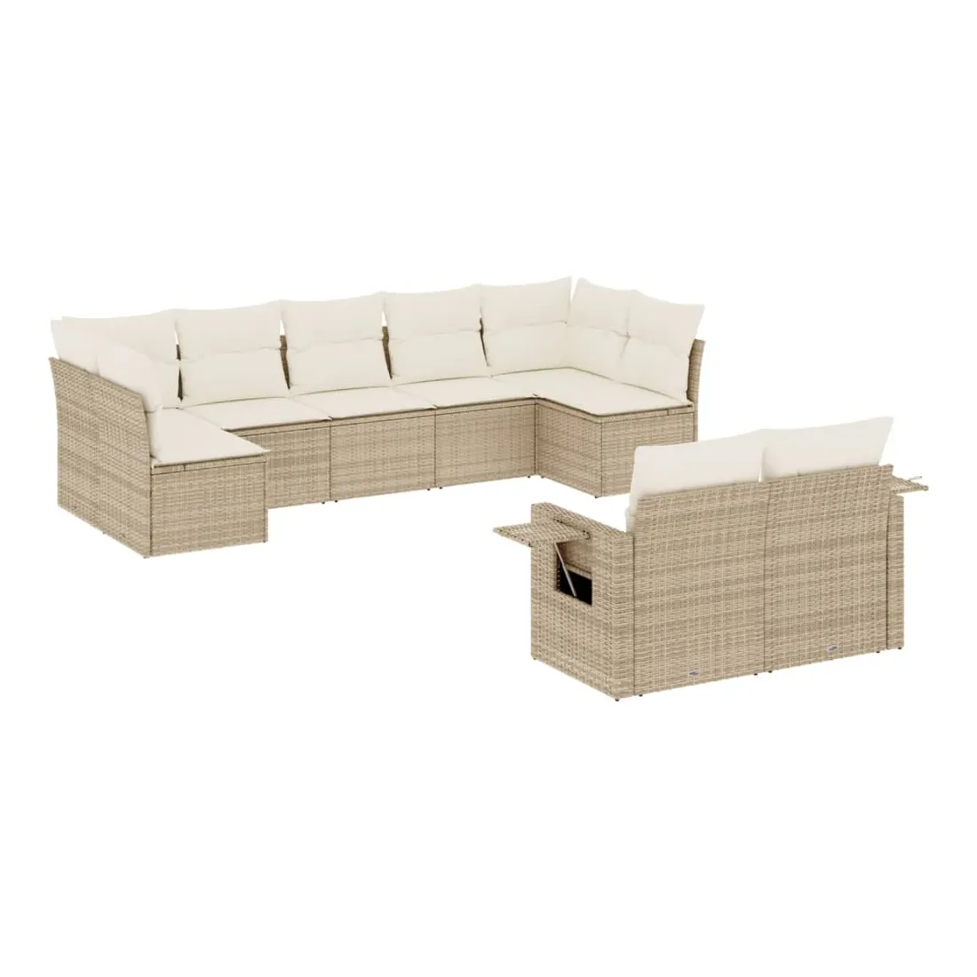 Cet ensemble de canapés de jardin est le complément parfait de votre arrière-cour, terrasse ou patio, offrant un espace confortable et accueillant pour discuter avec la famille et les amis ou simplement se détendre et profiter de l'extérieur. Matériau durable : la résine tressée, également connue sous le nom de poly rotin, est un matériau synthétique solide et nécessitant peu d'entretien qui ressemble au rotin naturel. Il est léger, facile à nettoyer et couramment utilisé pour les meubles d'extérieur en raison de sa durabilité et de ses propriétés de résistance aux intempéries. Table d'appoint pratique : ce mobilier d'extérieur comprend des tables d'appoint pliables avec un ressort à gaz sur les accoudoirs, offrant des endroits pratiques pour garder vos essentiels à portée de main. Expérience d'assise confortable : ce mobilier d'extérieur, doté de coussins épais, offre une expérience d'assise confortable. Housse amovible et lavable : ces coussins de siège sont dotés de housses amovibles pour un lavage et un entretien faciles.Conception modulaire : cet ensemble de meubles d'extérieur a une conception modulaire, ce qui le rend complètement flexible et facile à déplacer, afin que vous puissiez créer un agencement de meubles d'extérieur personnalisé. Bon à savoir :Pour que vos meubles d'extérieur restent beaux, nous vous recommandons de les protéger avec une housse imperméable.