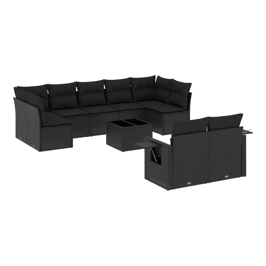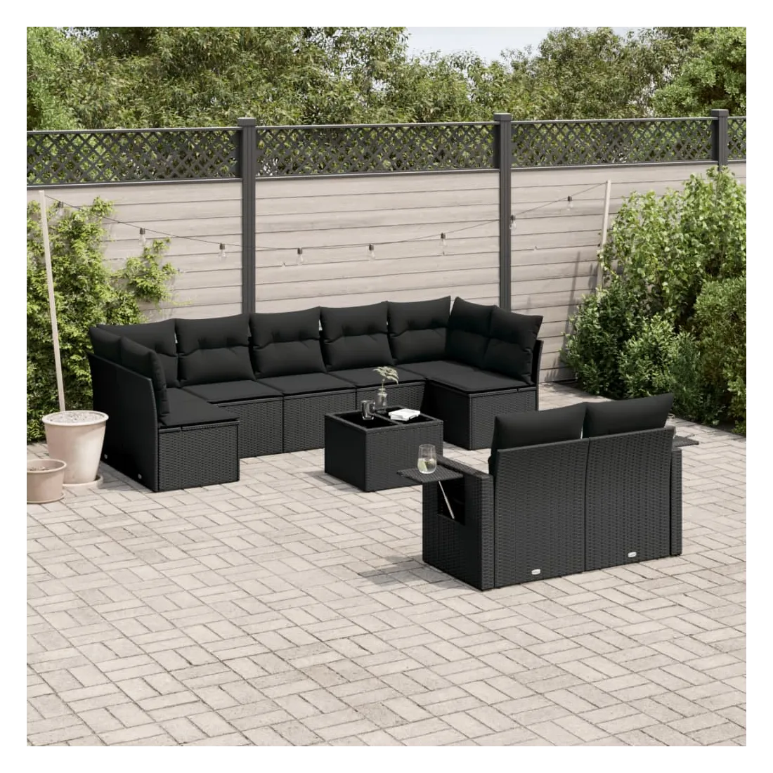 Cet ensemble de canapés de jardin est le complément parfait de votre arrière-cour, terrasse ou patio, offrant un espace confortable et accueillant pour discuter avec la famille et les amis ou simplement se détendre et profiter de l'extérieur. Matériau durable : la résine tressée, également connue sous le nom de poly rotin, est un matériau synthétique solide et nécessitant peu d'entretien qui ressemble au rotin naturel. Il est léger, facile à nettoyer et couramment utilisé pour les meubles d'extérieur en raison de sa durabilité et de ses propriétés de résistance aux intempéries.Dessus en verre : le dessus de la table d'extérieur est fabriqué en verre trempé solide et durable, ce qui le rend facile à nettoyer avec un chiffon humide et ajoute une touche d'élégance à votre espace extérieur. Table d'appoint pratique : ce mobilier d'extérieur comprend des tables d'appoint pliables avec un ressort à gaz sur les accoudoirs, offrant des endroits pratiques pour garder vos essentiels à portée de main. Expérience d'assise confortable : ce mobilier d'extérieur, doté de coussins épais, offre une expérience d'assise confortable.Conception modulaire : cet ensemble de meubles d'extérieur a une conception modulaire, ce qui le rend complètement flexible et facile à déplacer, afin que vous puissiez créer un agencement de meubles d'extérieur personnalisé. Bon à savoir :Pour que vos meubles d'extérieur restent beaux, nous vous recommandons de les protéger avec une housse imperméable.