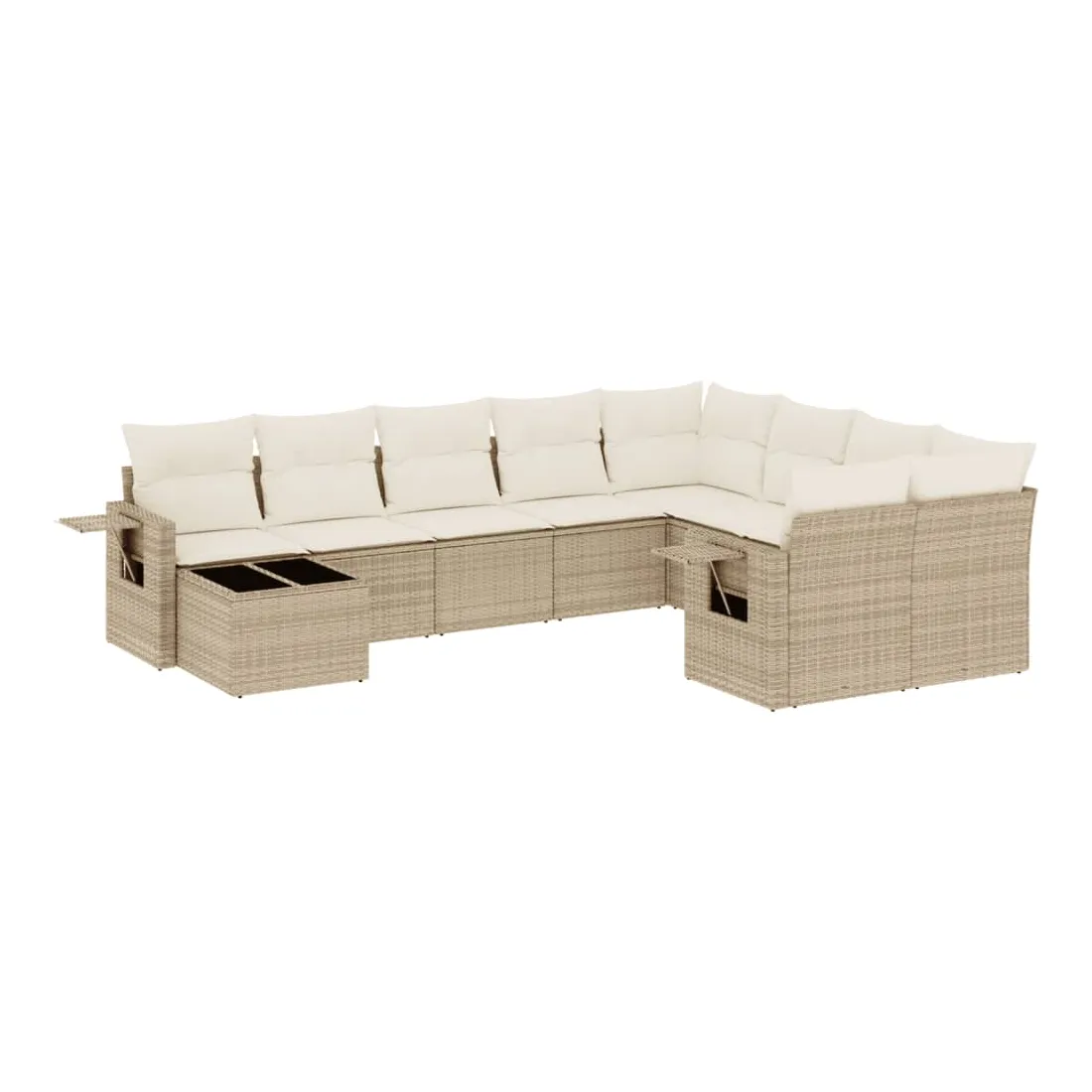 Salon de jardin avec coussins 10 pcs beige résine tressée