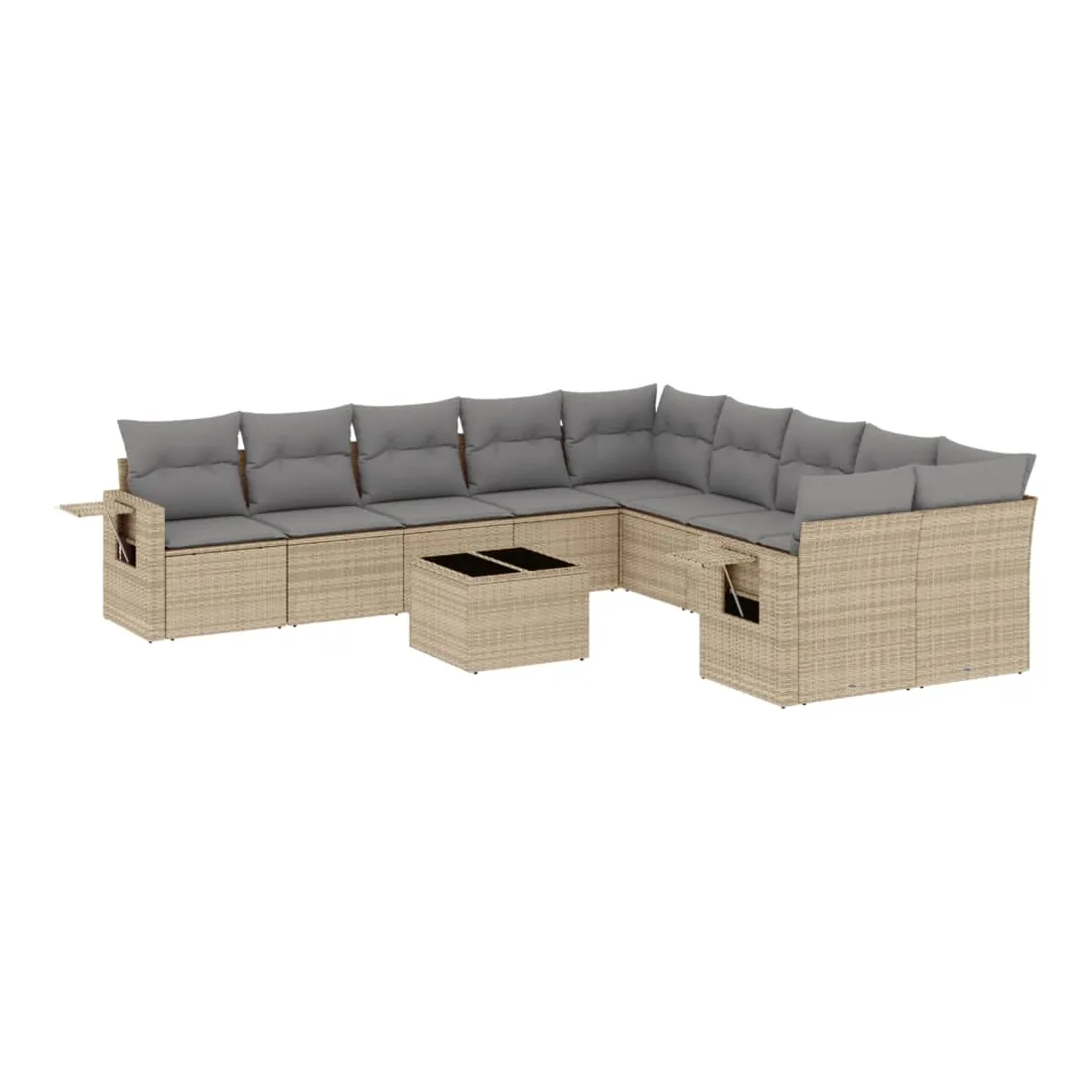 Salon de jardin 11 pcs avec coussins beige résine tressée
