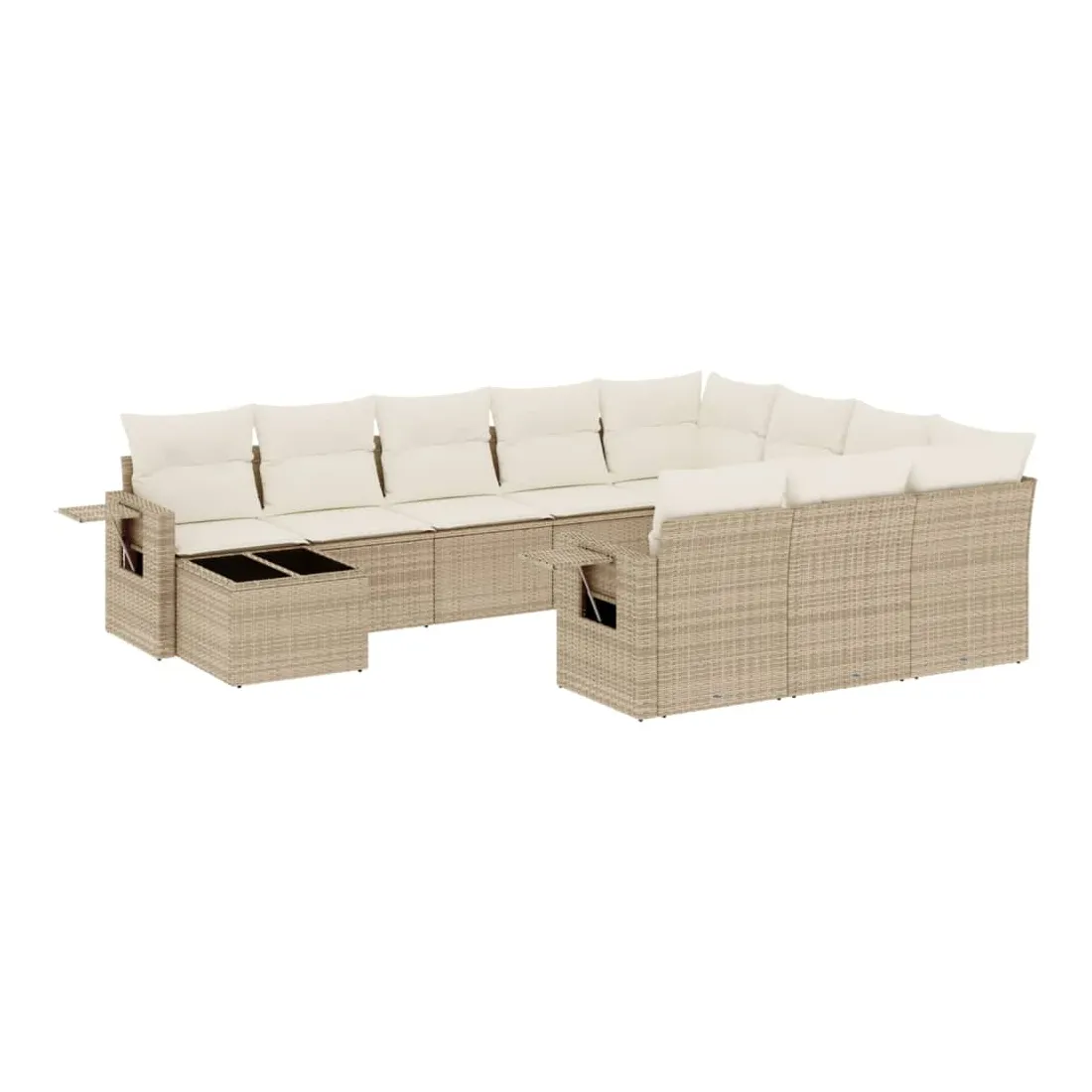 Salon de jardin 11 pcs avec coussins beige résine tressée