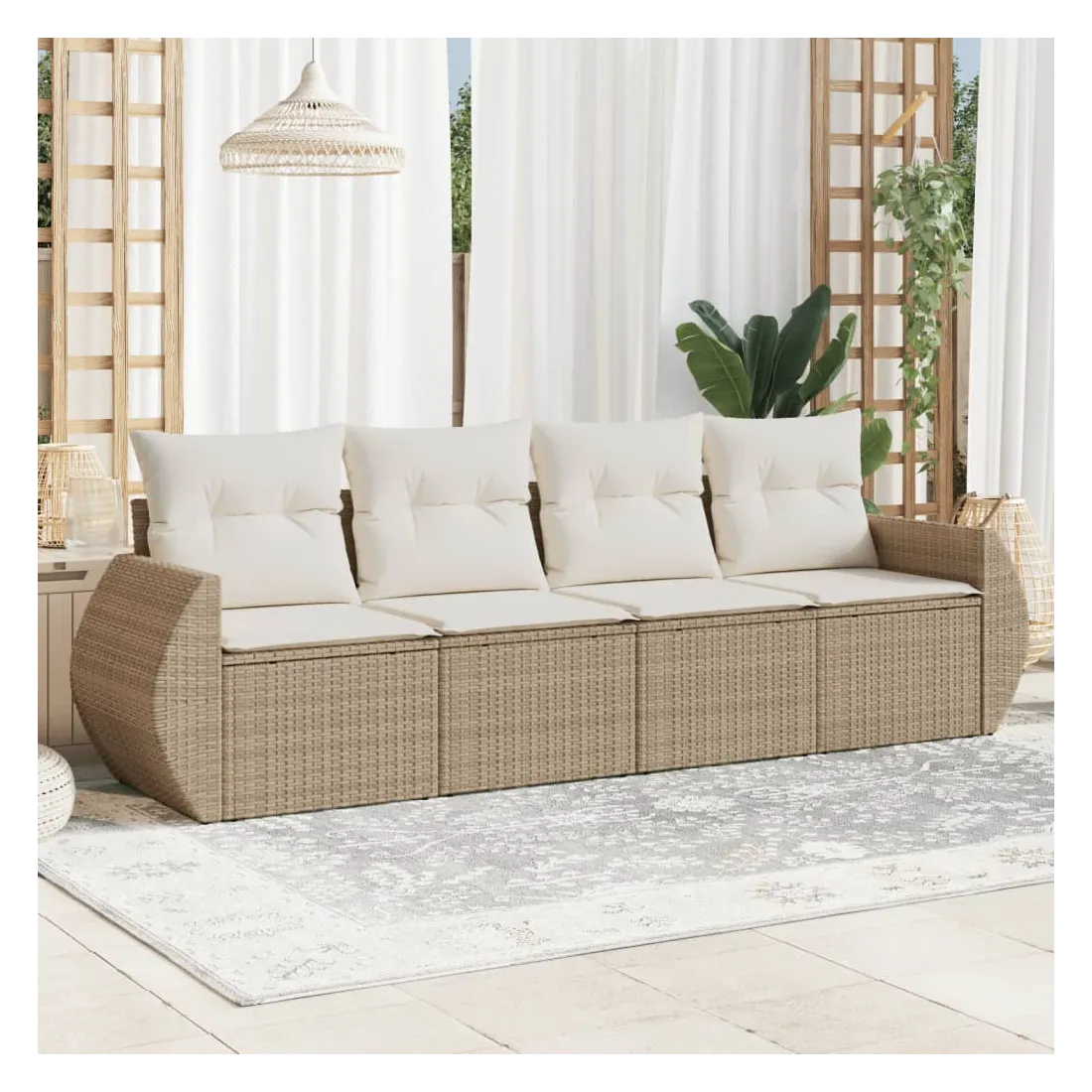 Cet ensemble de canapés de jardin est le complément parfait de votre arrière-cour, terrasse ou patio, offrant un espace confortable et accueillant pour discuter avec la famille et les amis ou simplement se détendre et profiter de l'extérieur. Matériau durable : la résine tressée, également connue sous le nom de poly rotin, est un matériau synthétique solide et nécessitant peu d'entretien qui ressemble au rotin naturel. Il est léger, facile à nettoyer et couramment utilisé pour les meubles d'extérieur en raison de sa durabilité et de ses propriétés de résistance aux intempéries.Expérience d'assise confortable : ce mobilier d'extérieur, doté de coussins épais, offre une expérience d'assise confortable. Housse amovible et lavable : ces coussins de siège sont dotés de housses amovibles pour un lavage et un entretien faciles.Conception modulaire : cet ensemble de meubles d'extérieur a une conception modulaire, ce qui le rend complètement flexible et facile à déplacer, afin que vous puissiez créer un agencement de meubles d'extérieur personnalisé.Cadre robuste et stable : le cadre en acier enduit de poudre assure la solidité et la stabilité du meuble de jardin pour une utilisation quotidienne à l'extérieur. Bon à savoir :Pour que vos meubles d'extérieur restent beaux, nous vous recommandons de les protéger avec une housse imperméable.