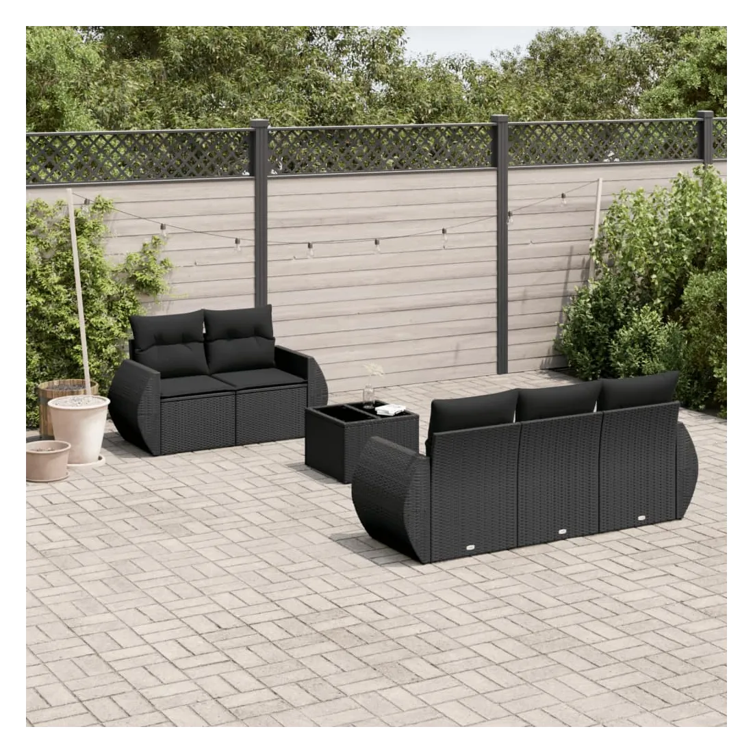 Cet ensemble de canapés de jardin est le complément parfait de votre arrière-cour, terrasse ou patio, offrant un espace confortable et accueillant pour discuter avec la famille et les amis ou simplement se détendre et profiter de l'extérieur. Matériau durable : la résine tressée, également connue sous le nom de poly rotin, est un matériau synthétique solide et nécessitant peu d'entretien qui ressemble au rotin naturel. Il est léger, facile à nettoyer et couramment utilisé pour les meubles d'extérieur en raison de sa durabilité et de ses propriétés de résistance aux intempéries.Dessus en verre : le dessus de la table d'extérieur est fabriqué en verre trempé solide et durable, ce qui le rend facile à nettoyer avec un chiffon humide et ajoute une touche d'élégance à votre espace extérieur. Expérience d'assise confortable : ce mobilier d'extérieur, doté de coussins épais, offre une expérience d'assise confortable. Housse amovible et lavable : ces coussins de siège sont dotés de housses amovibles pour un lavage et un entretien faciles.Conception modulaire : cet ensemble de meubles d'extérieur a une conception modulaire, ce qui le rend complètement flexible et facile à déplacer, afin que vous puissiez créer un agencement de meubles d'extérieur personnalisé. Bon à savoir :Pour que vos meubles d'extérieur restent beaux, nous vous recommandons de les protéger avec une housse imperméable.