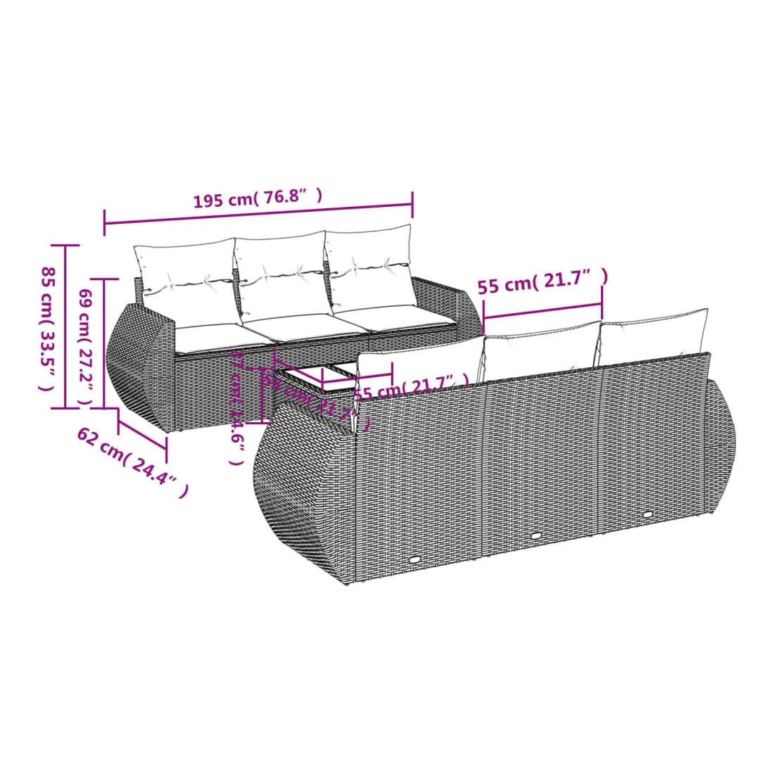 Cet ensemble de canapés de jardin est le complément parfait de votre arrière-cour, terrasse ou patio, offrant un espace confortable et accueillant pour discuter avec la famille et les amis ou simplement se détendre et profiter de l'extérieur. Matériau durable : la résine tressée, également connue sous le nom de poly rotin, est un matériau synthétique solide et nécessitant peu d'entretien qui ressemble au rotin naturel. Il est léger, facile à nettoyer et couramment utilisé pour les meubles d'extérieur en raison de sa durabilité et de ses propriétés de résistance aux intempéries.Dessus en verre : le dessus de la table d'extérieur est fabriqué en verre trempé solide et durable, ce qui le rend facile à nettoyer avec un chiffon humide et ajoute une touche d'élégance à votre espace extérieur. Expérience d'assise confortable : ce mobilier d'extérieur, doté de coussins épais, offre une expérience d'assise confortable. Housse amovible et lavable : ces coussins de siège sont dotés de housses amovibles pour un lavage et un entretien faciles.Conception modulaire : cet ensemble de meubles d'extérieur a une conception modulaire, ce qui le rend complètement flexible et facile à déplacer, afin que vous puissiez créer un agencement de meubles d'extérieur personnalisé. Bon à savoir :Pour que vos meubles d'extérieur restent beaux, nous vous recommandons de les protéger avec une housse imperméable.