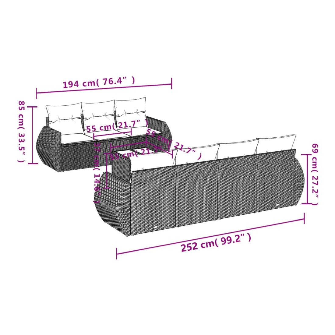 - Dimensions du coussin de dossier : 55 x 45 x 13 cm (L x l x é)