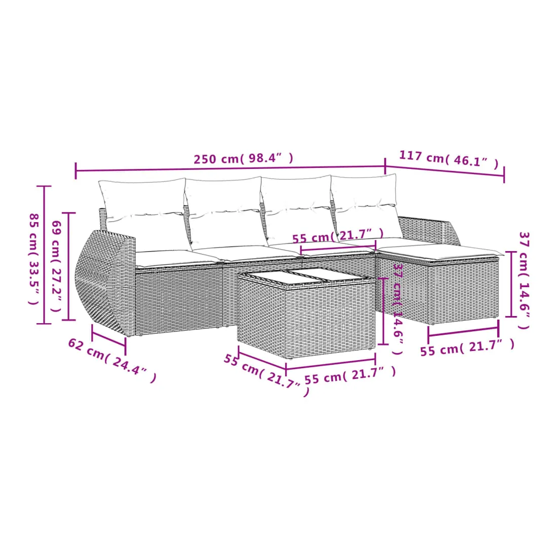 - Dimensions : 55 x 55 x 37 cm (L x l x H)