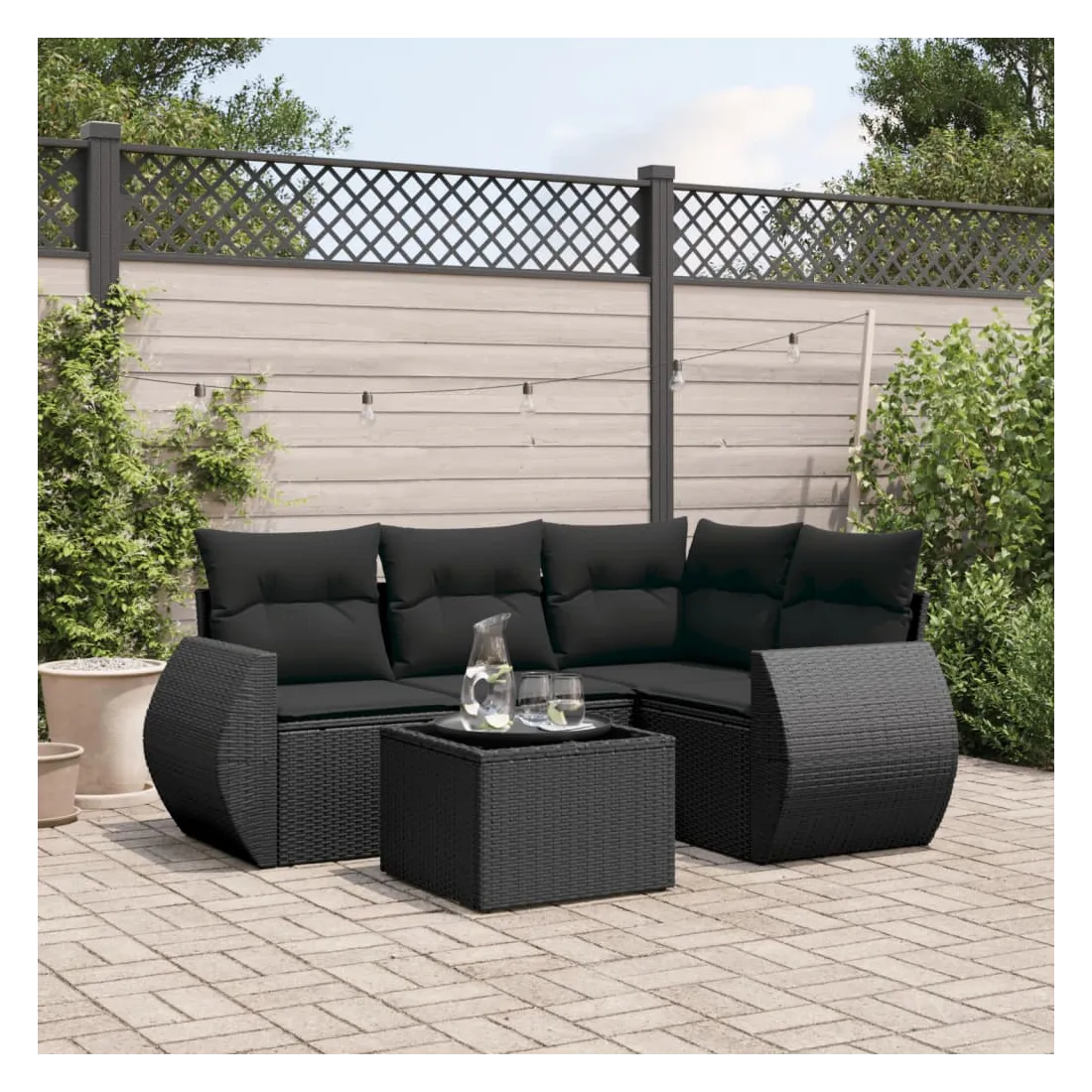 Cet ensemble de canapés de jardin est le complément parfait de votre arrière-cour, terrasse ou patio, offrant un espace confortable et accueillant pour discuter avec la famille et les amis ou simplement se détendre et profiter de l'extérieur. Matériau durable : la résine tressée, également connue sous le nom de poly rotin, est un matériau synthétique solide et nécessitant peu d'entretien qui ressemble au rotin naturel. Il est léger, facile à nettoyer et couramment utilisé pour les meubles d'extérieur en raison de sa durabilité et de ses propriétés de résistance aux intempéries.Dessus en verre : le dessus de la table d'extérieur est fabriqué en verre trempé solide et durable, ce qui le rend facile à nettoyer avec un chiffon humide et ajoute une touche d'élégance à votre espace extérieur. Expérience d'assise confortable : ce mobilier d'extérieur, doté de coussins épais, offre une expérience d'assise confortable.Housse amovible et lavable : ces coussins de siège sont dotés de housses amovibles pour un lavage et un entretien faciles.Conception modulaire : cet ensemble de meubles d'extérieur a une conception modulaire, ce qui le rend complètement flexible et facile à déplacer, afin que vous puissiez créer un agencement de meubles d'extérieur personnalisé. Bon à savoir :Pour que vos meubles d'extérieur restent beaux, nous vous recommandons de les protéger avec une housse imperméable.