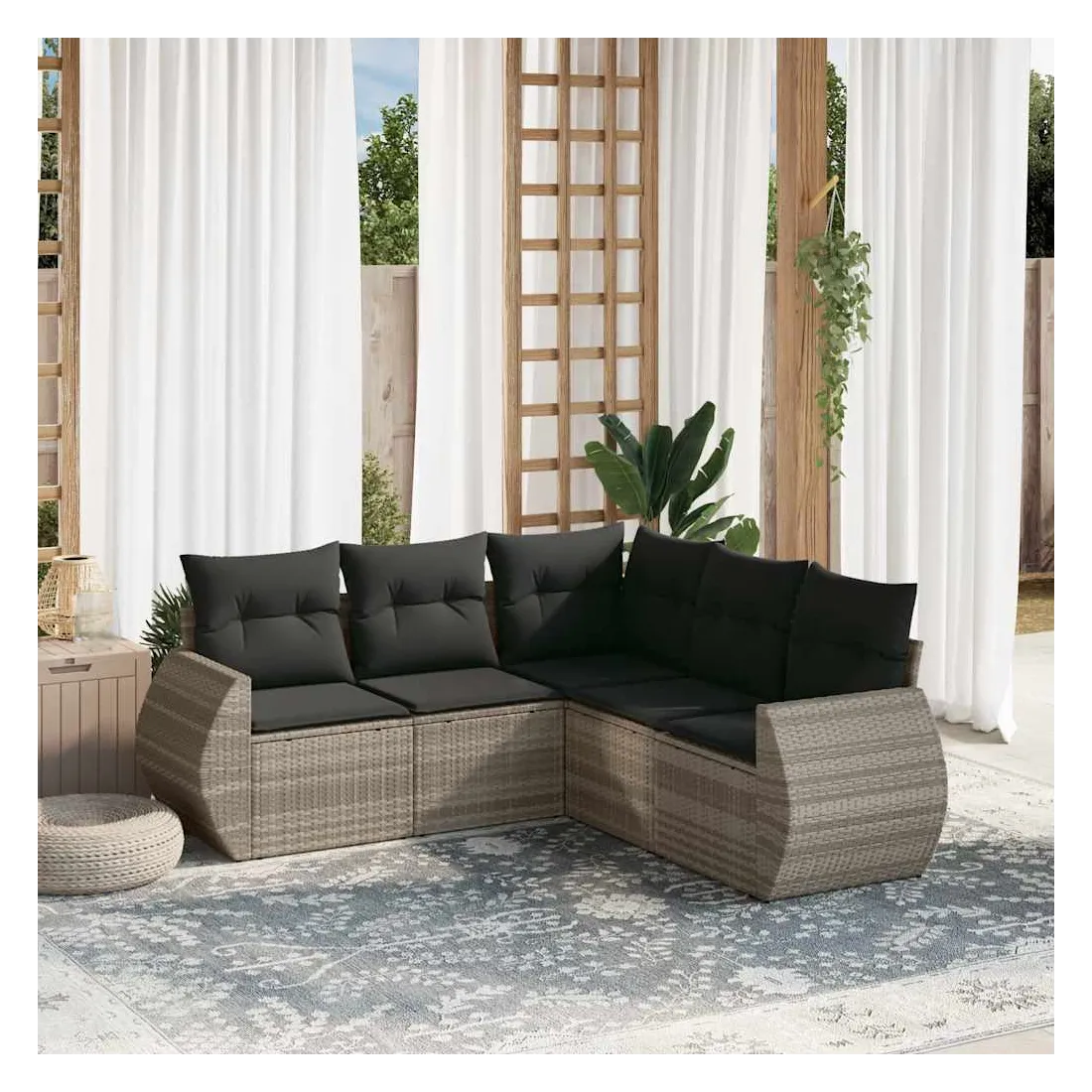 Salon de jardin 5 pcs avec coussins gris clair résine tressée