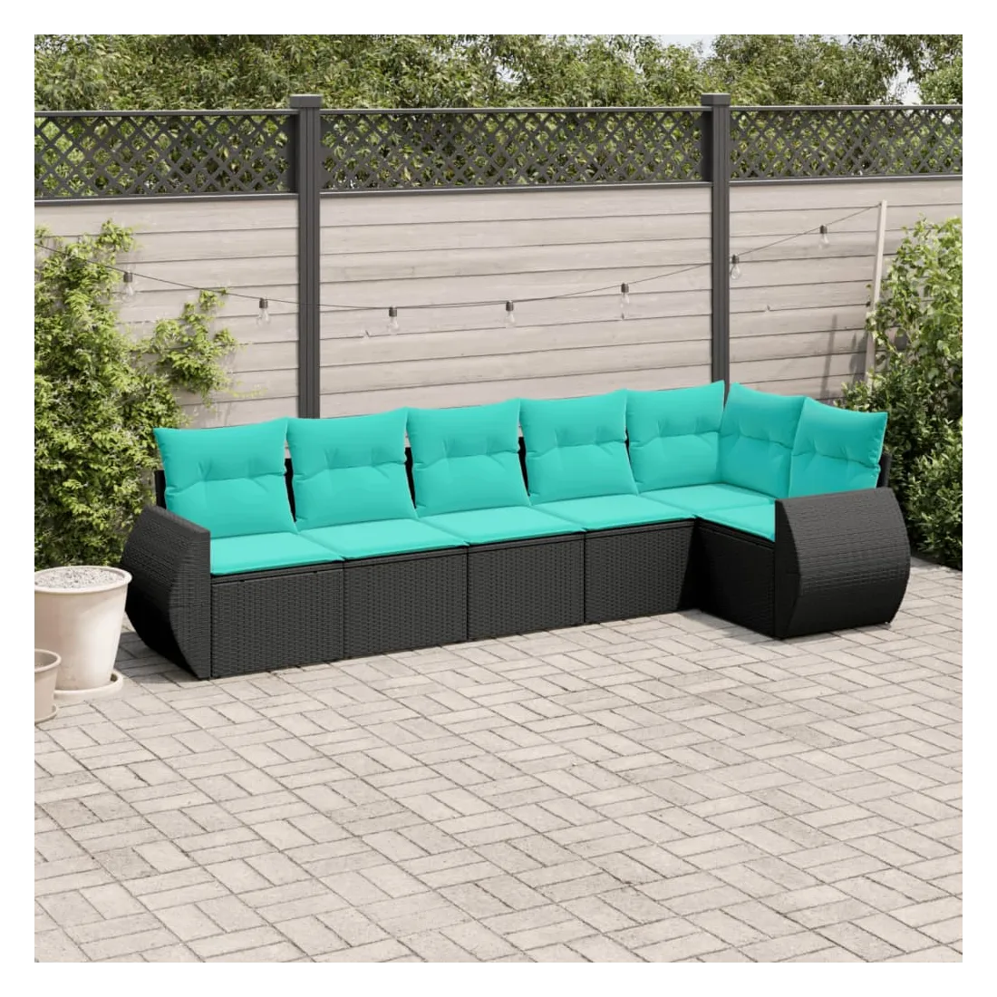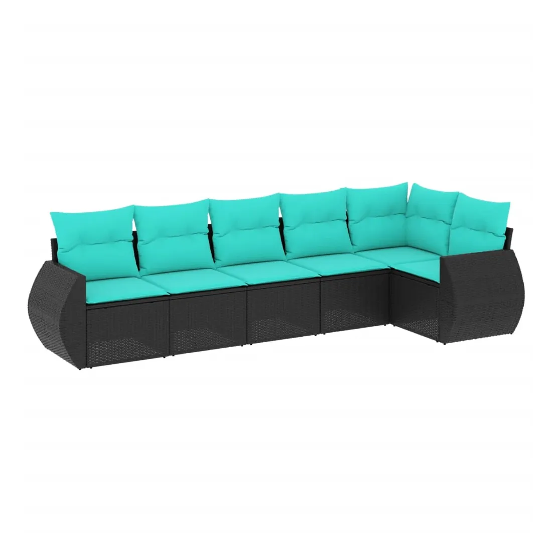 Salon de jardin 6 pcs avec coussins noir résine tressée