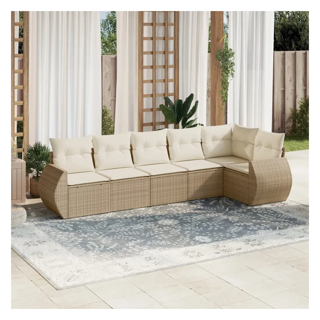 Salon de jardin avec coussins 6 pcs beige résine tressée