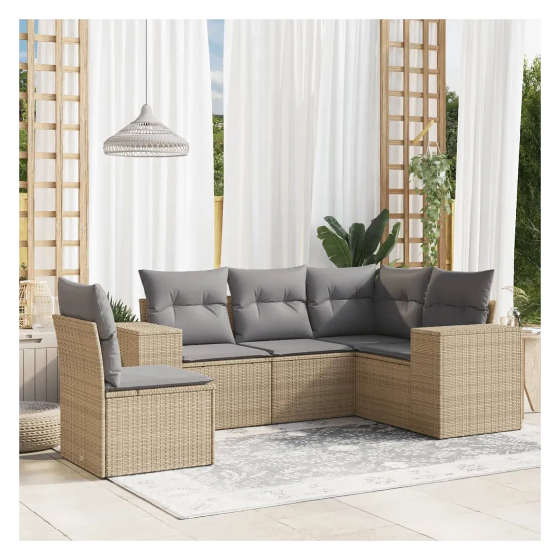 Cet ensemble de canapés de jardin est le complément parfait de votre arrière-cour, terrasse ou patio, offrant un espace confortable et accueillant pour discuter avec la famille et les amis ou simplement se détendre et profiter de l'extérieur. Matériau durable : la résine tressée, également connue sous le nom de poly rotin, est un matériau synthétique solide et nécessitant peu d'entretien qui ressemble au rotin naturel. Il est léger, facile à nettoyer et couramment utilisé pour les meubles d'extérieur en raison de sa durabilité et de ses propriétés de résistance aux intempéries.Expérience d'assise confortable : ce mobilier d'extérieur, doté de coussins épais, offre une expérience d'assise confortable.Housse amovible et lavable : ces coussins de siège sont dotés de housses amovibles pour un lavage et un entretien faciles.Conception modulaire : cet ensemble de meubles d'extérieur a une conception modulaire, ce qui le rend complètement flexible et facile à déplacer, afin que vous puissiez créer un agencement de meubles d'extérieur personnalisé. Bon à savoir :Pour que vos meubles d'extérieur restent beaux, nous vous recommandons de les protéger avec une housse imperméable.