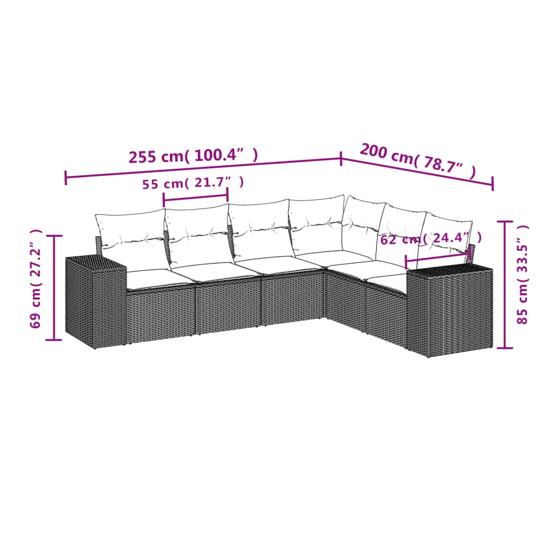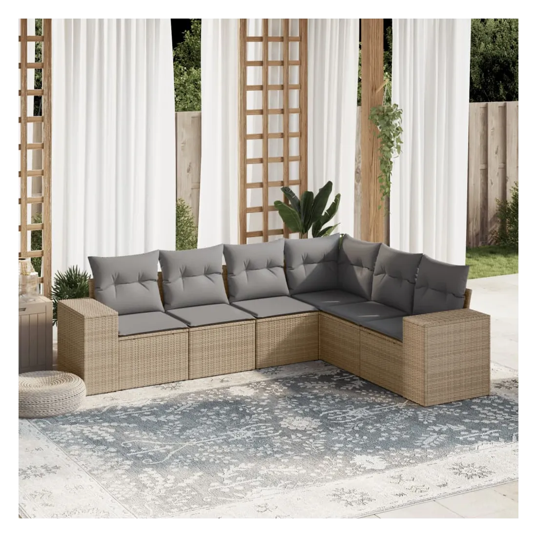 Salon de jardin avec coussins 6 pcs beige résine tressée